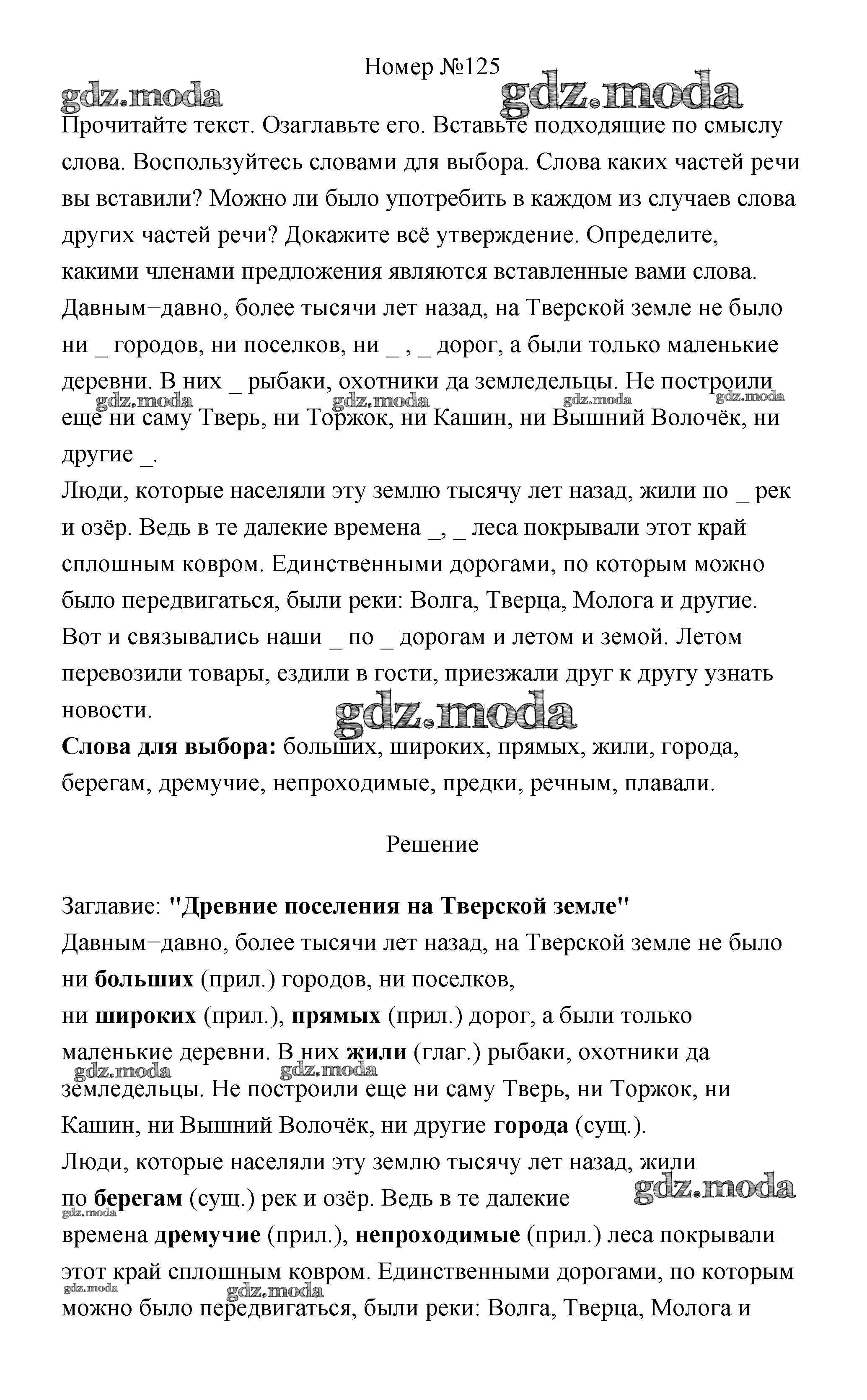 ОТВЕТ на задание № 125 Рабочая тетрадь по Русскому языку 4 класс Климанова Перспектива