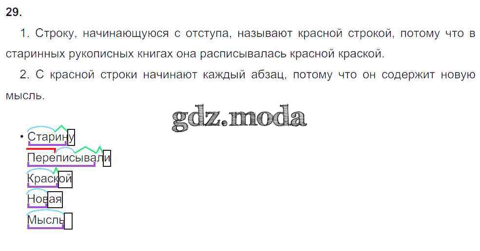 ОТВЕТ на задание № 29 Рабочая тетрадь по Русскому языку 4 класс Климанова Перспектива