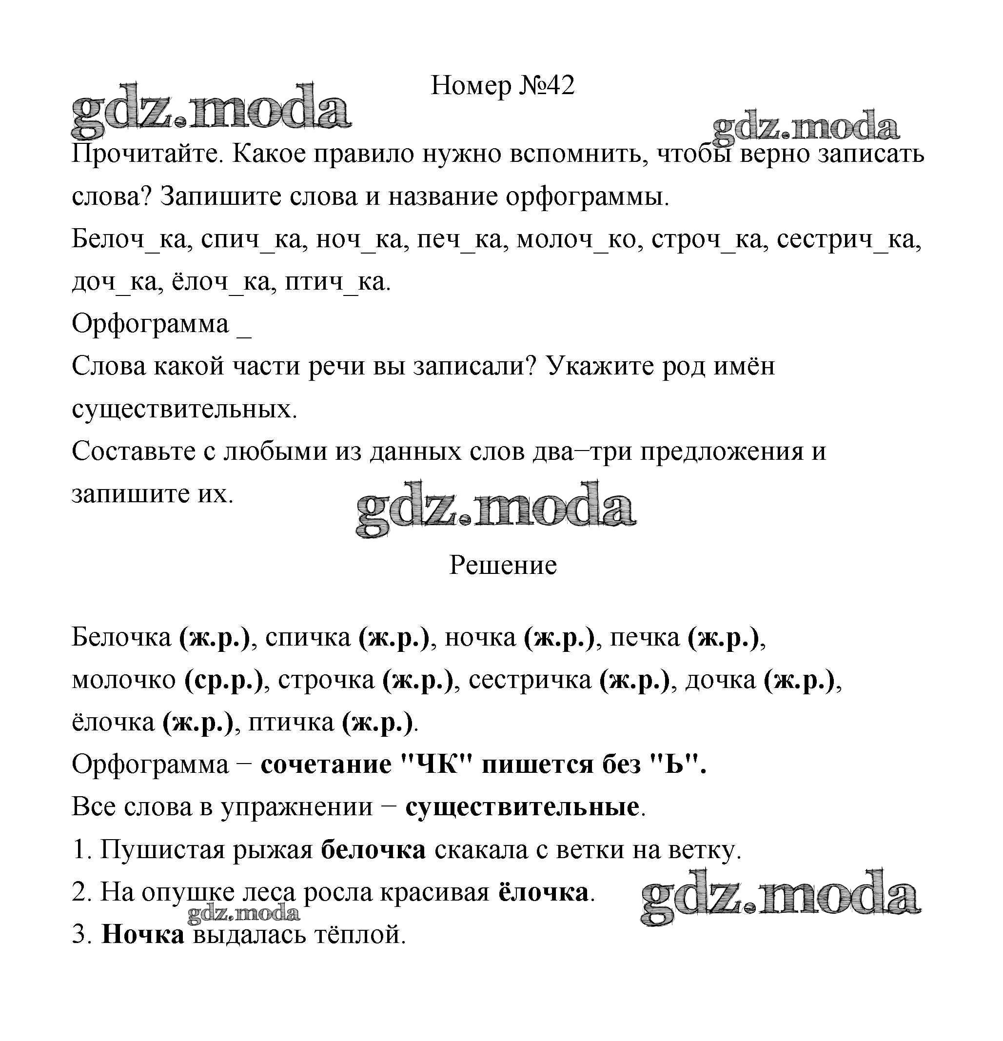 ОТВЕТ на задание № 42 Рабочая тетрадь по Русскому языку 4 класс Климанова Перспектива
