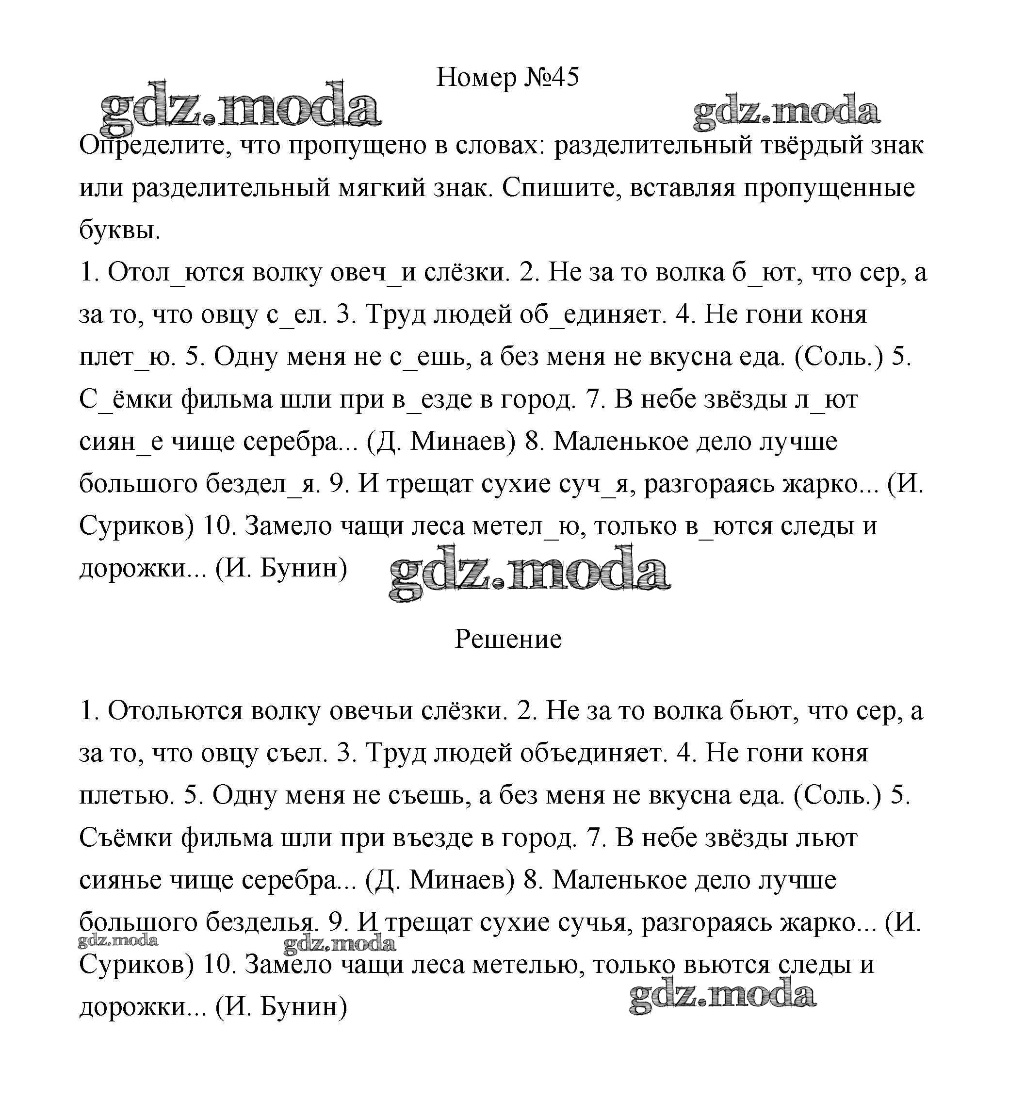 ОТВЕТ на задание № 45 Рабочая тетрадь по Русскому языку 4 класс Климанова Перспектива