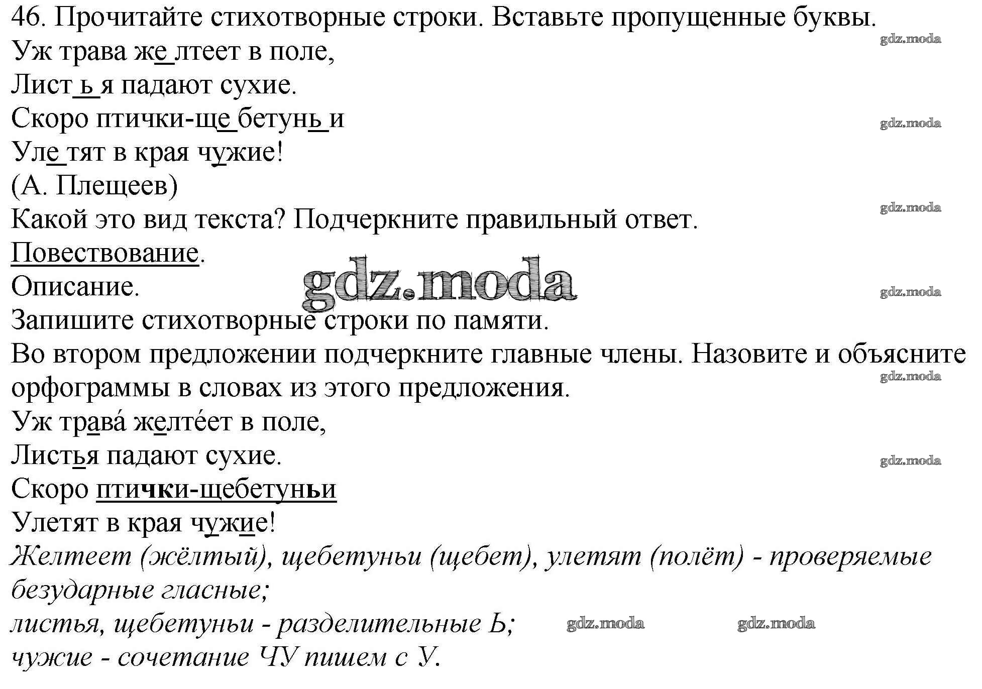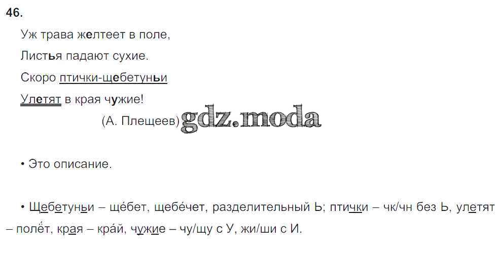 ОТВЕТ на задание № 46 Рабочая тетрадь по Русскому языку 4 класс Климанова Перспектива