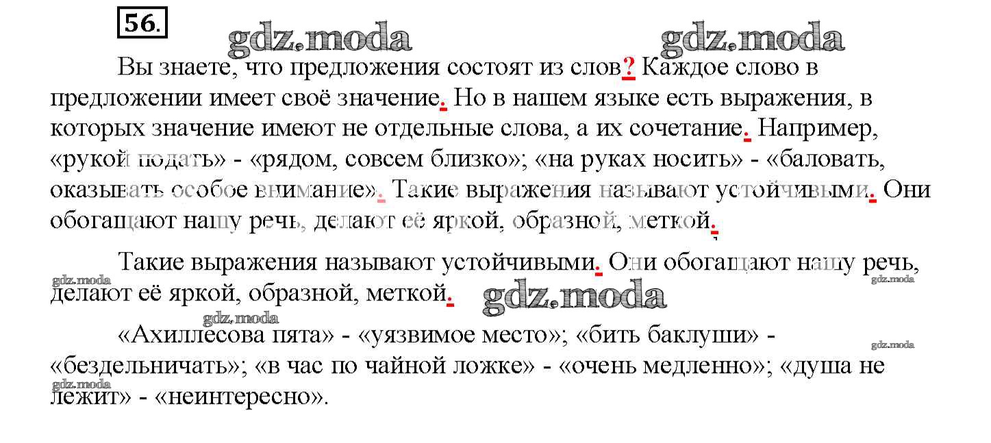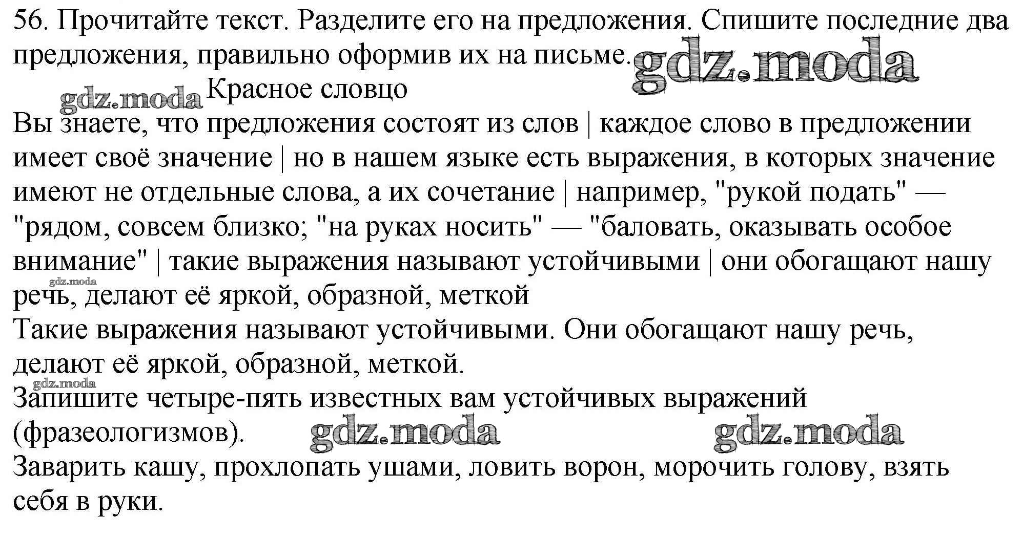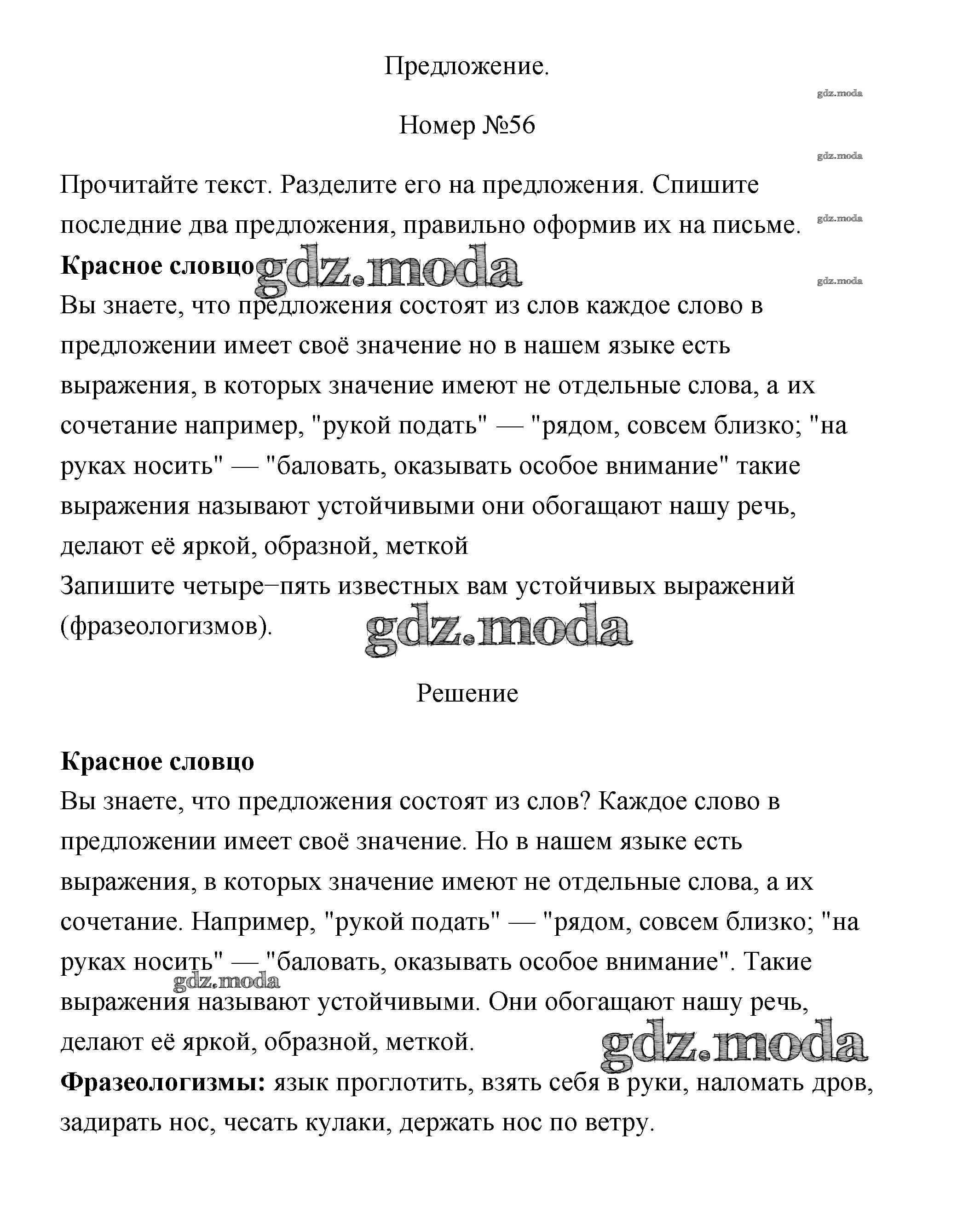 ОТВЕТ на задание № 56 Рабочая тетрадь по Русскому языку 4 класс Климанова Перспектива