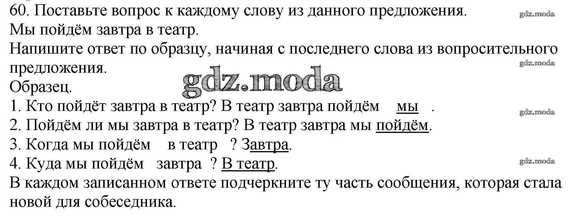 ОТВЕТ на задание № 60 Рабочая тетрадь по Русскому языку 4 класс Климанова Перспектива