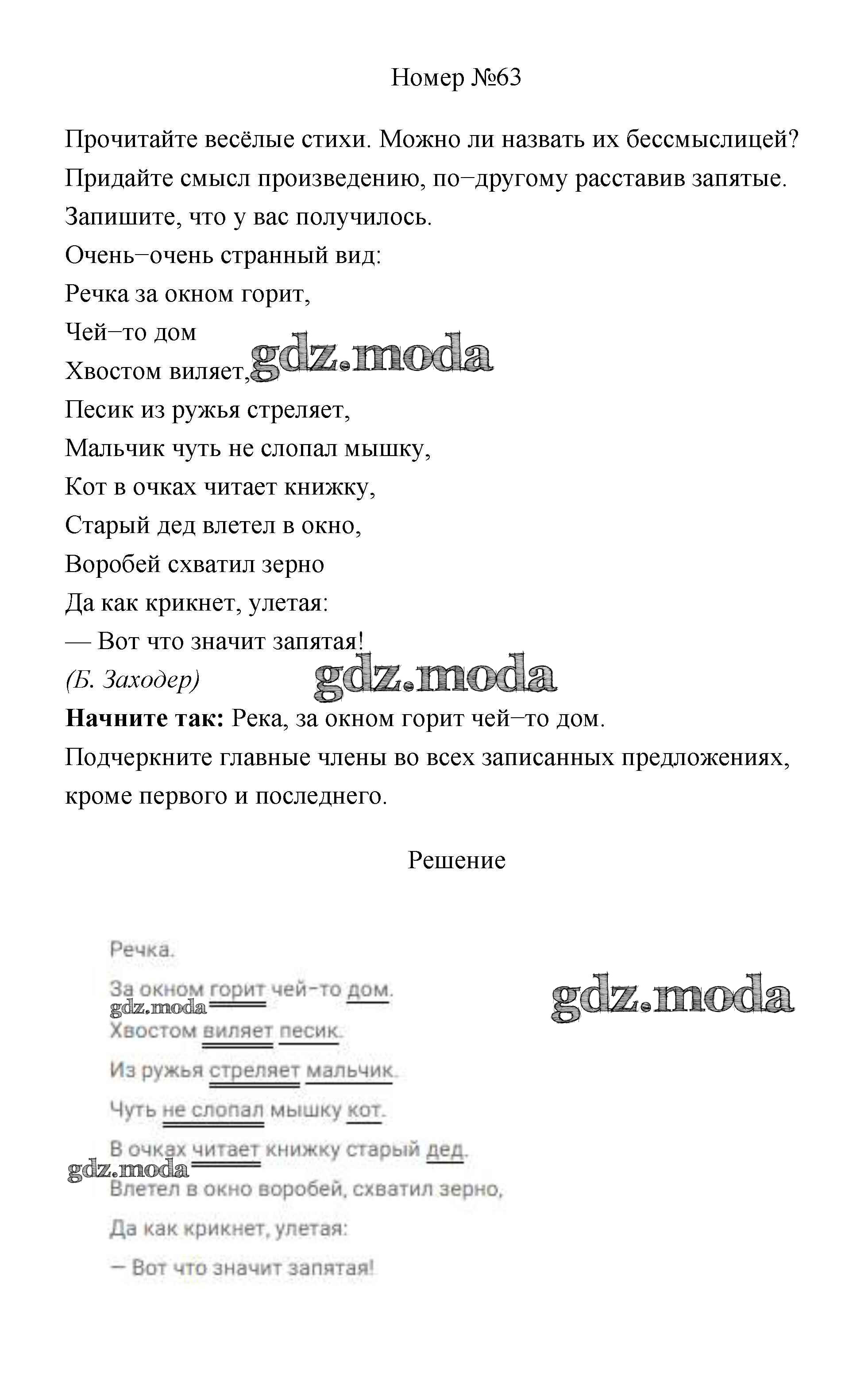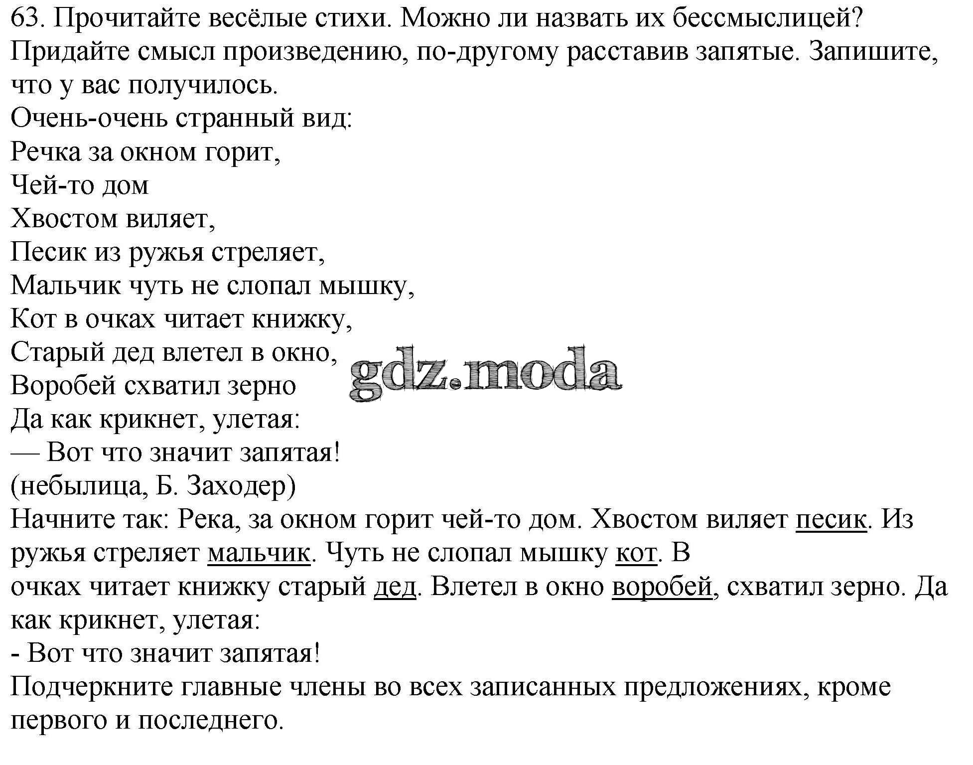 ОТВЕТ на задание № 63 Рабочая тетрадь по Русскому языку 4 класс Климанова Перспектива