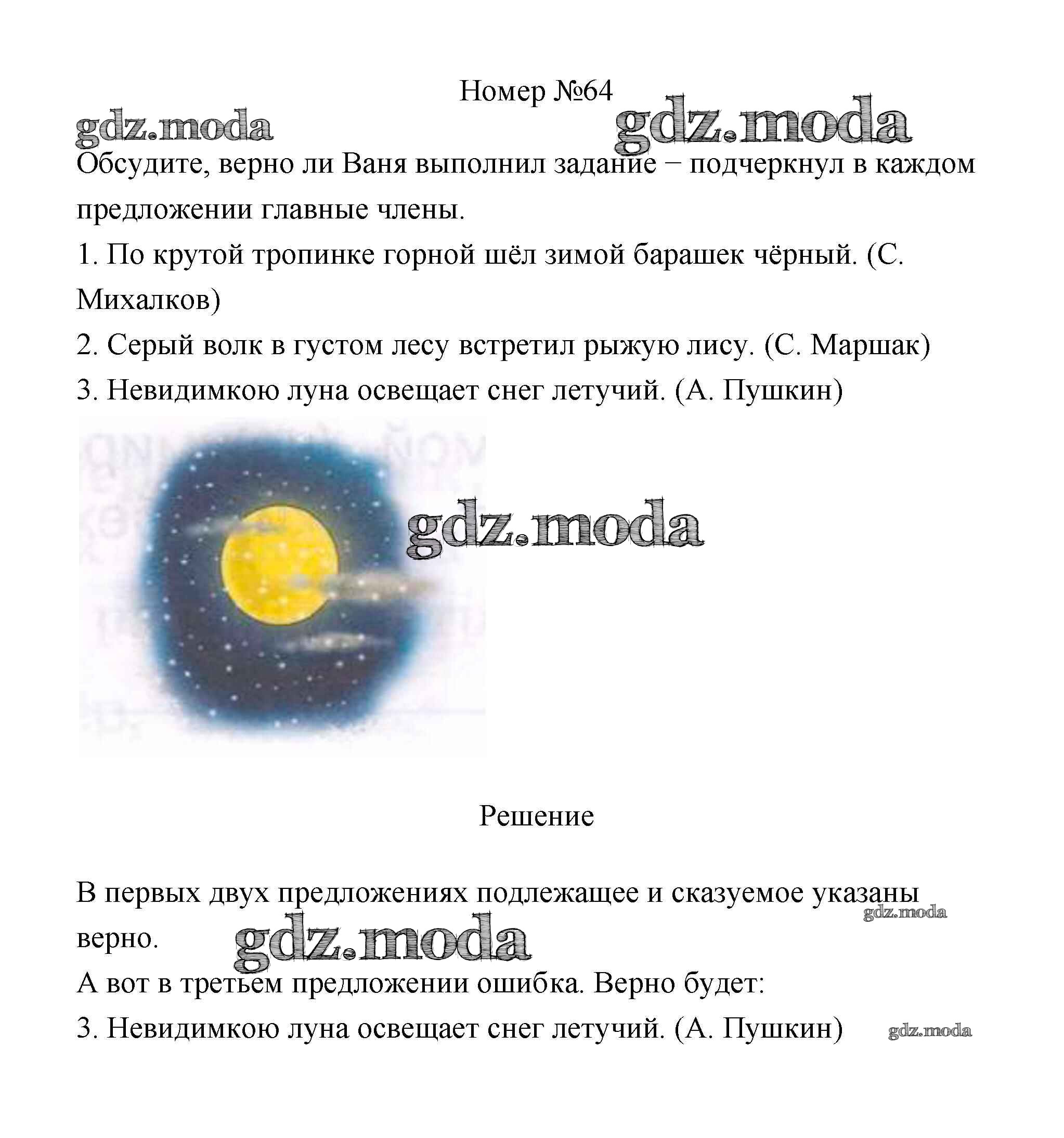 ОТВЕТ на задание № 64 Рабочая тетрадь по Русскому языку 4 класс Климанова Перспектива