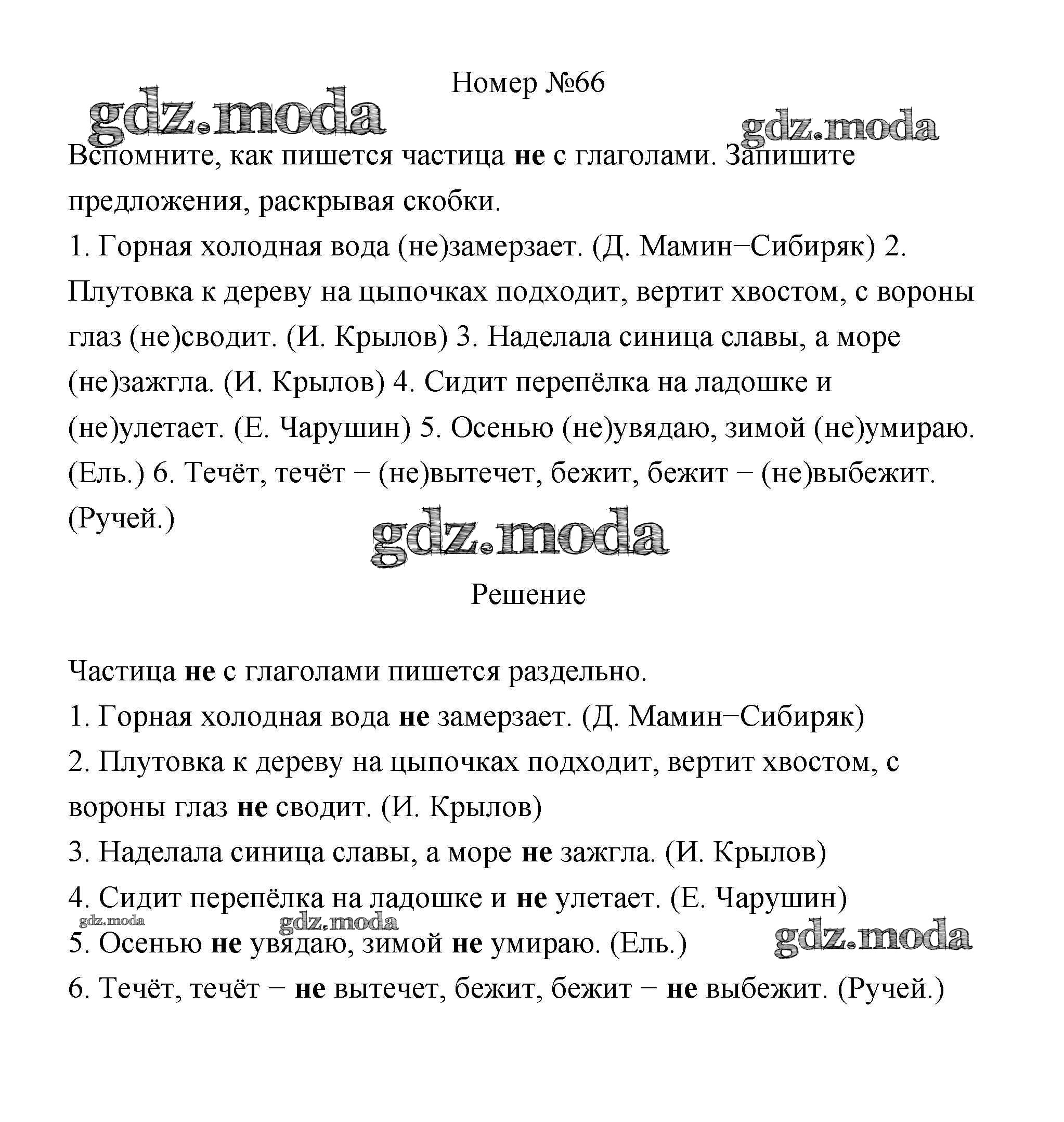 ОТВЕТ на задание № 66 Рабочая тетрадь по Русскому языку 4 класс Климанова Перспектива
