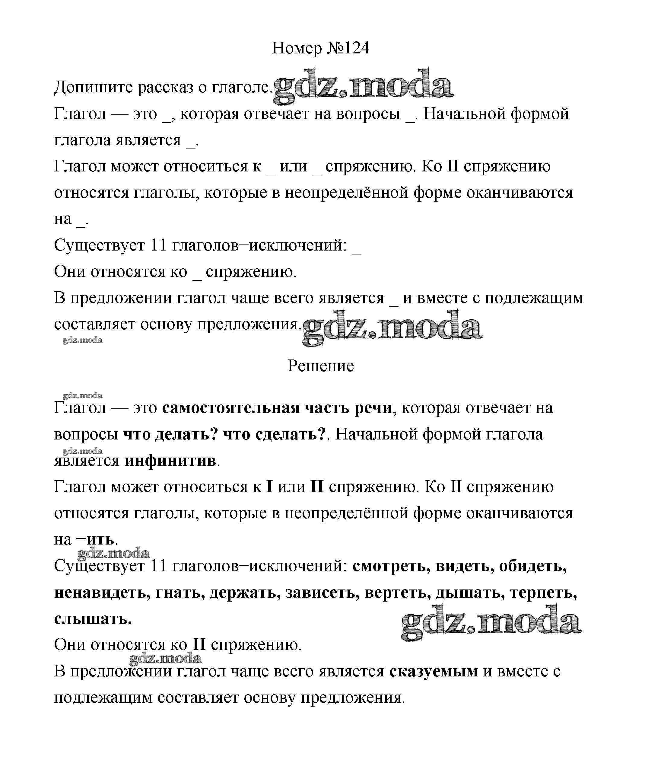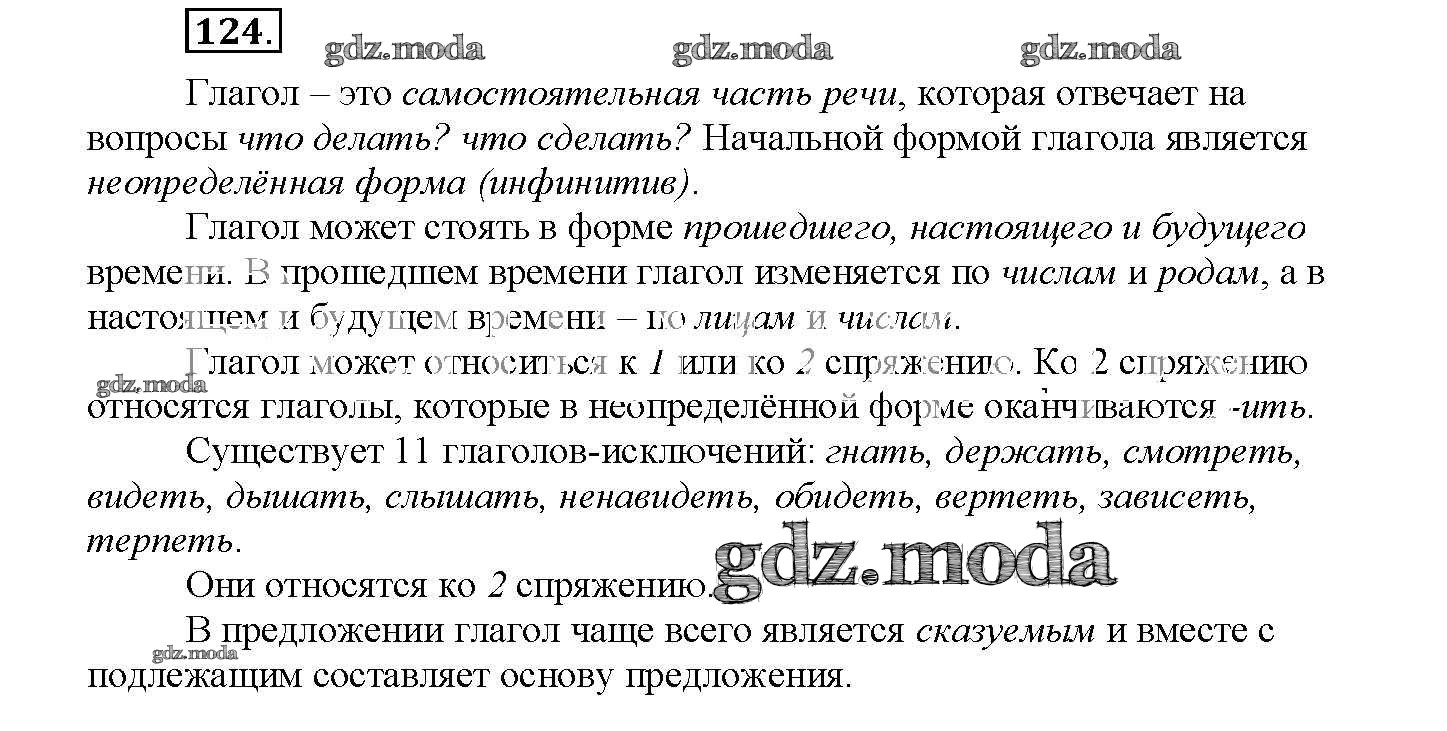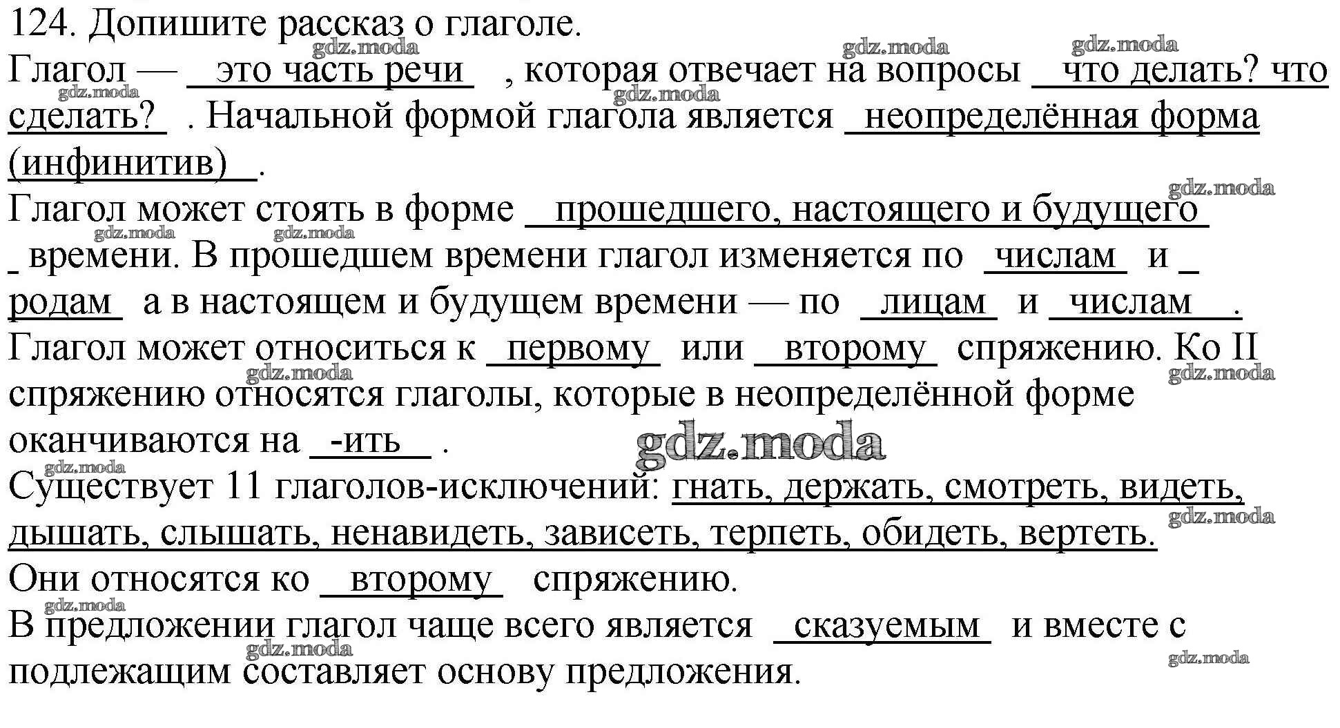 ОТВЕТ на задание № 124 Рабочая тетрадь по Русскому языку 4 класс Климанова Перспектива