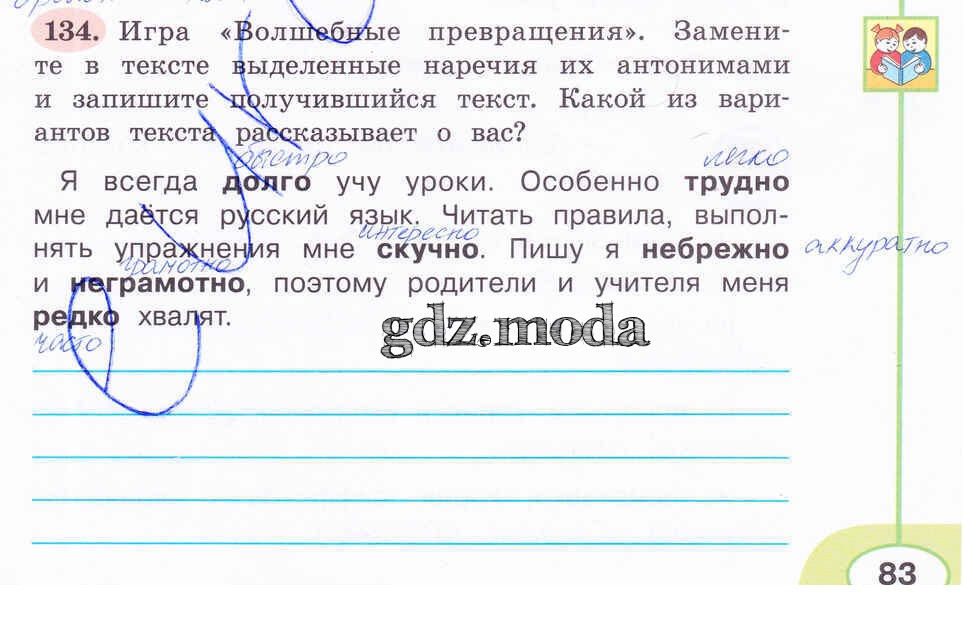 ОТВЕТ на задание № 134 Рабочая тетрадь по Русскому языку 4 класс Климанова Перспектива