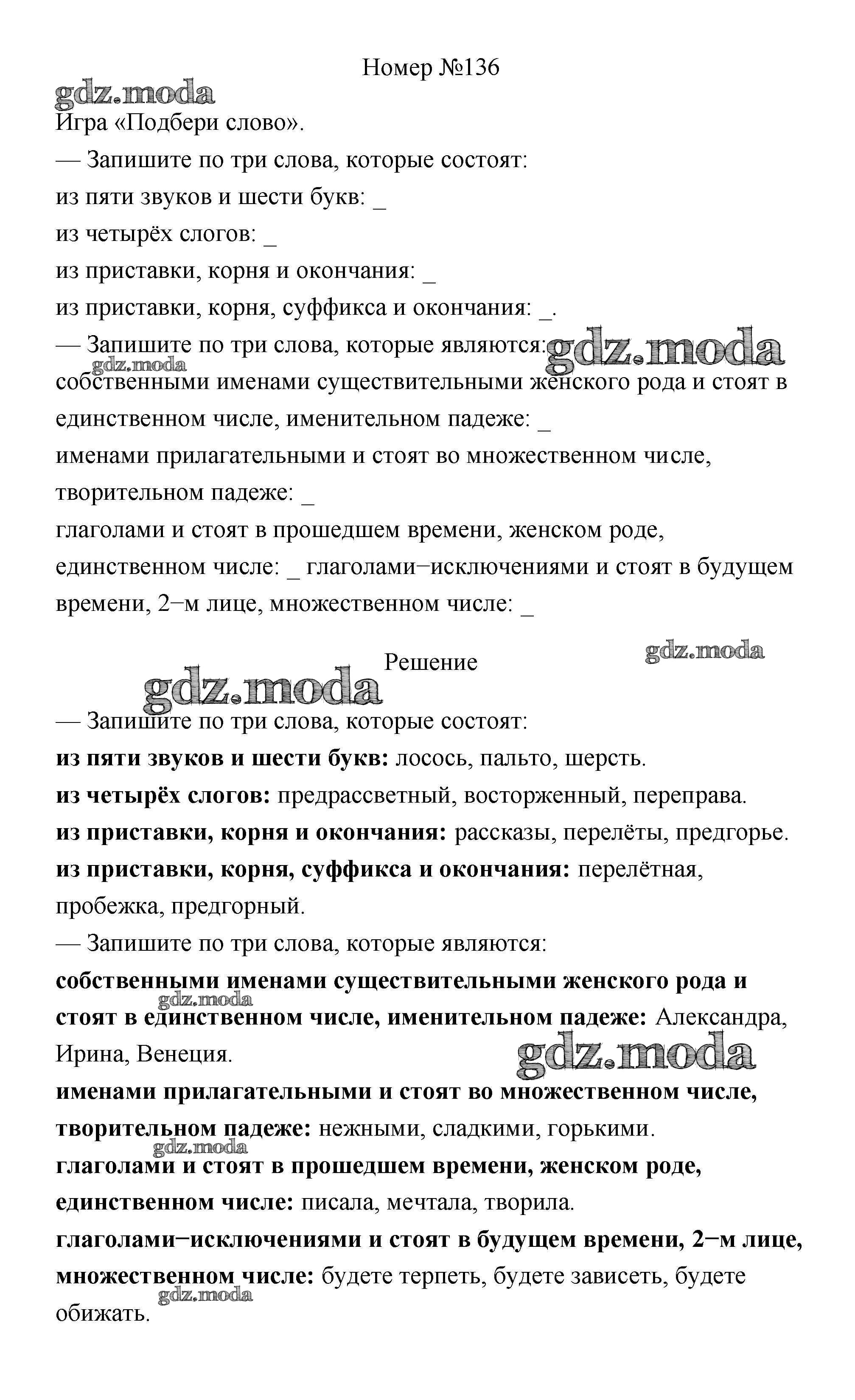 ОТВЕТ на задание № 136 Рабочая тетрадь по Русскому языку 4 класс Климанова Перспектива