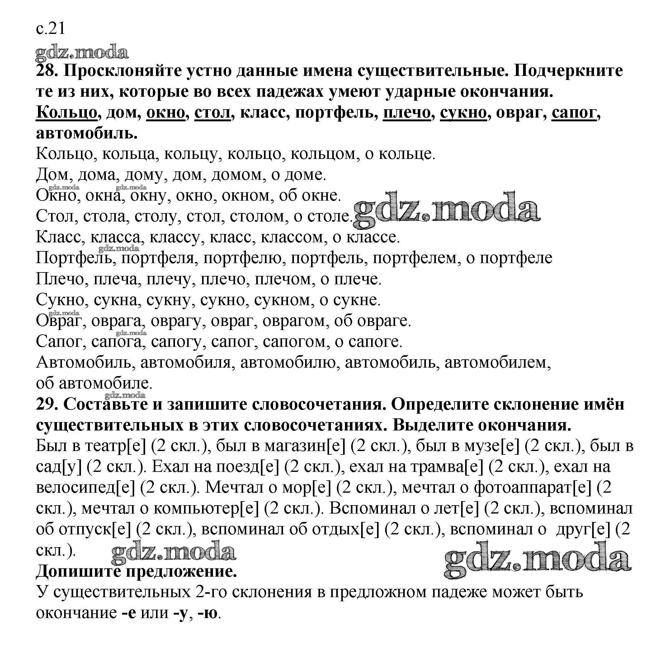 ОТВЕТ на задание № 21 Рабочая тетрадь по Русскому языку 4 класс Климанова Перспектива