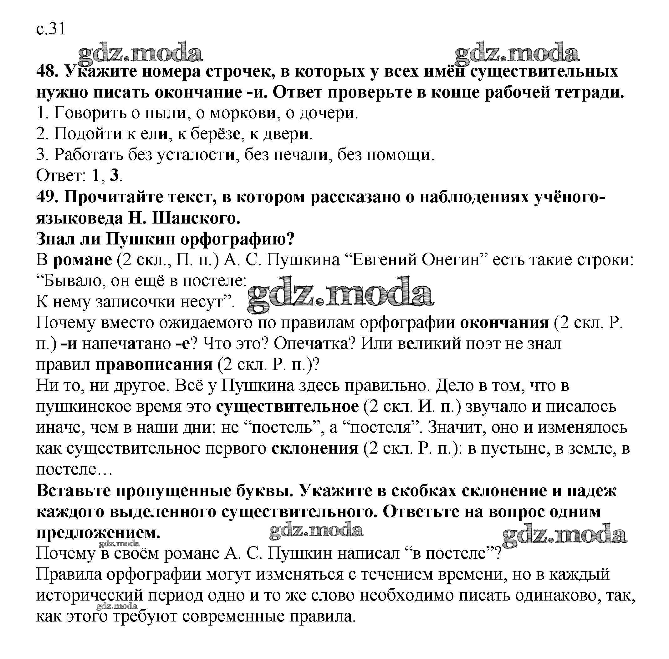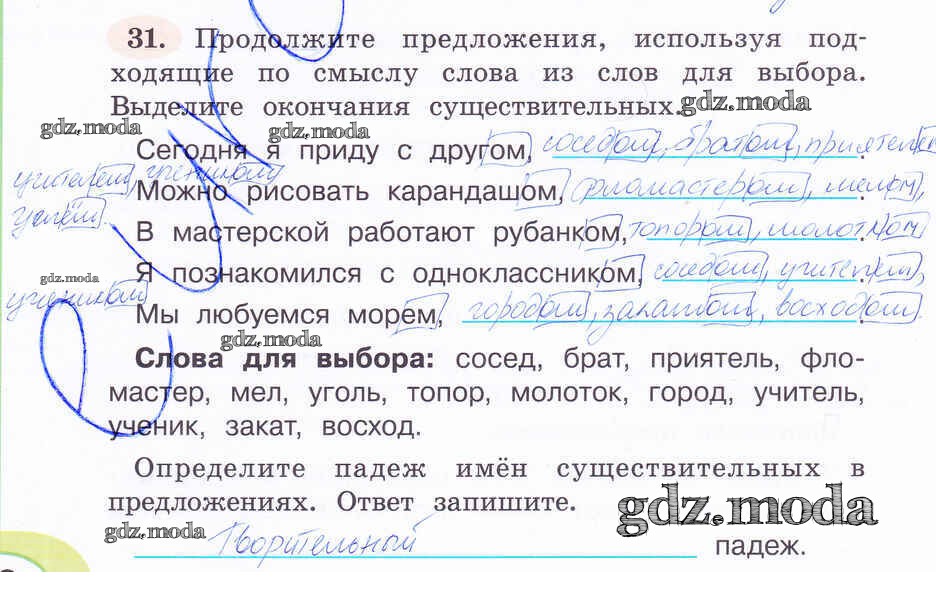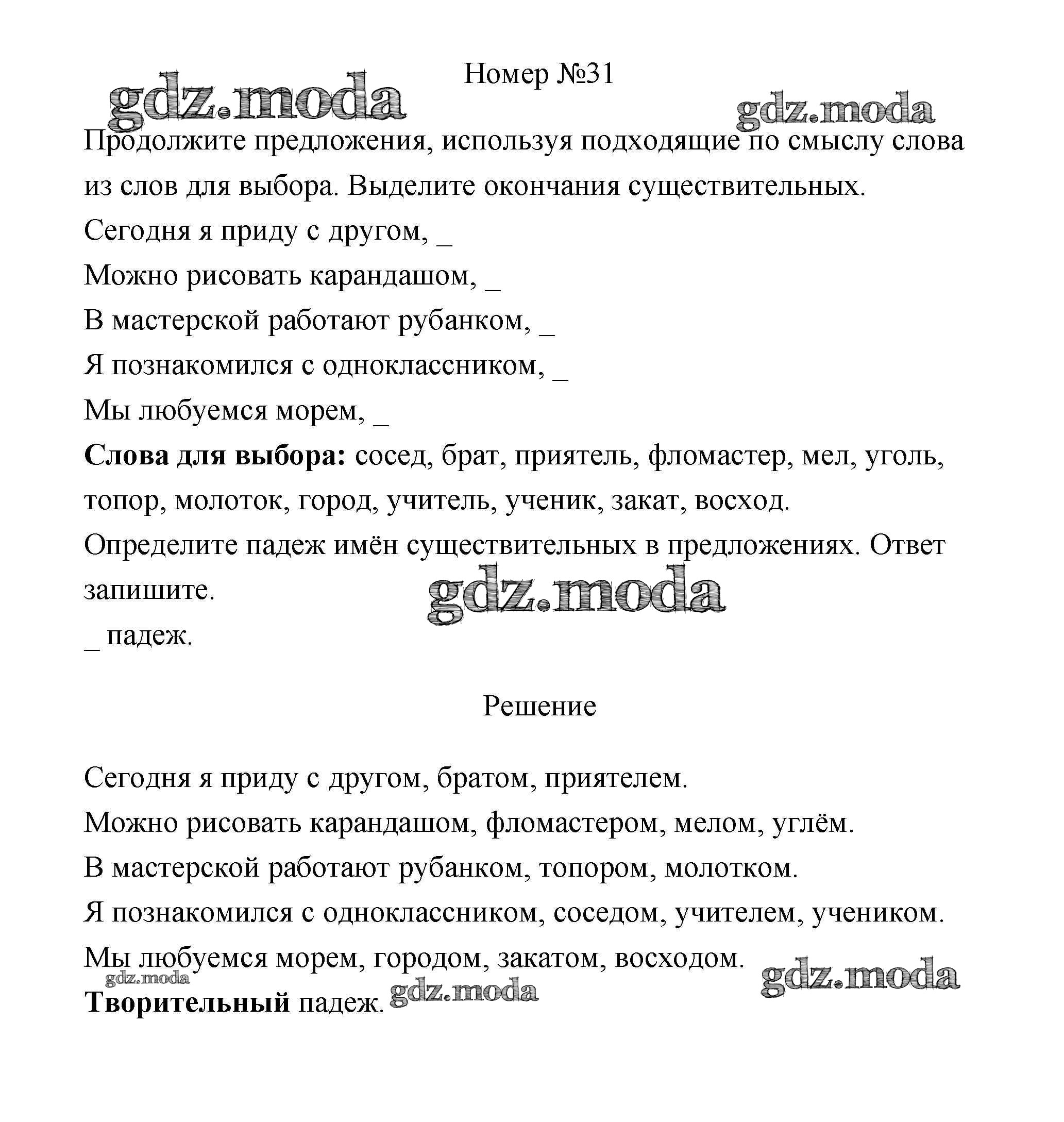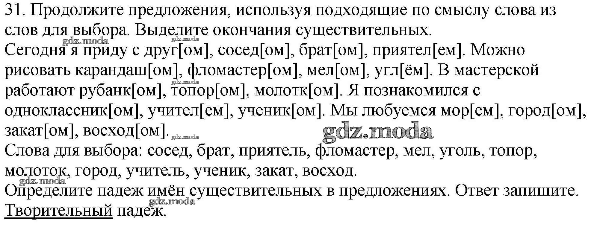 ОТВЕТ на задание № 31 Рабочая тетрадь по Русскому языку 4 класс Климанова Перспектива