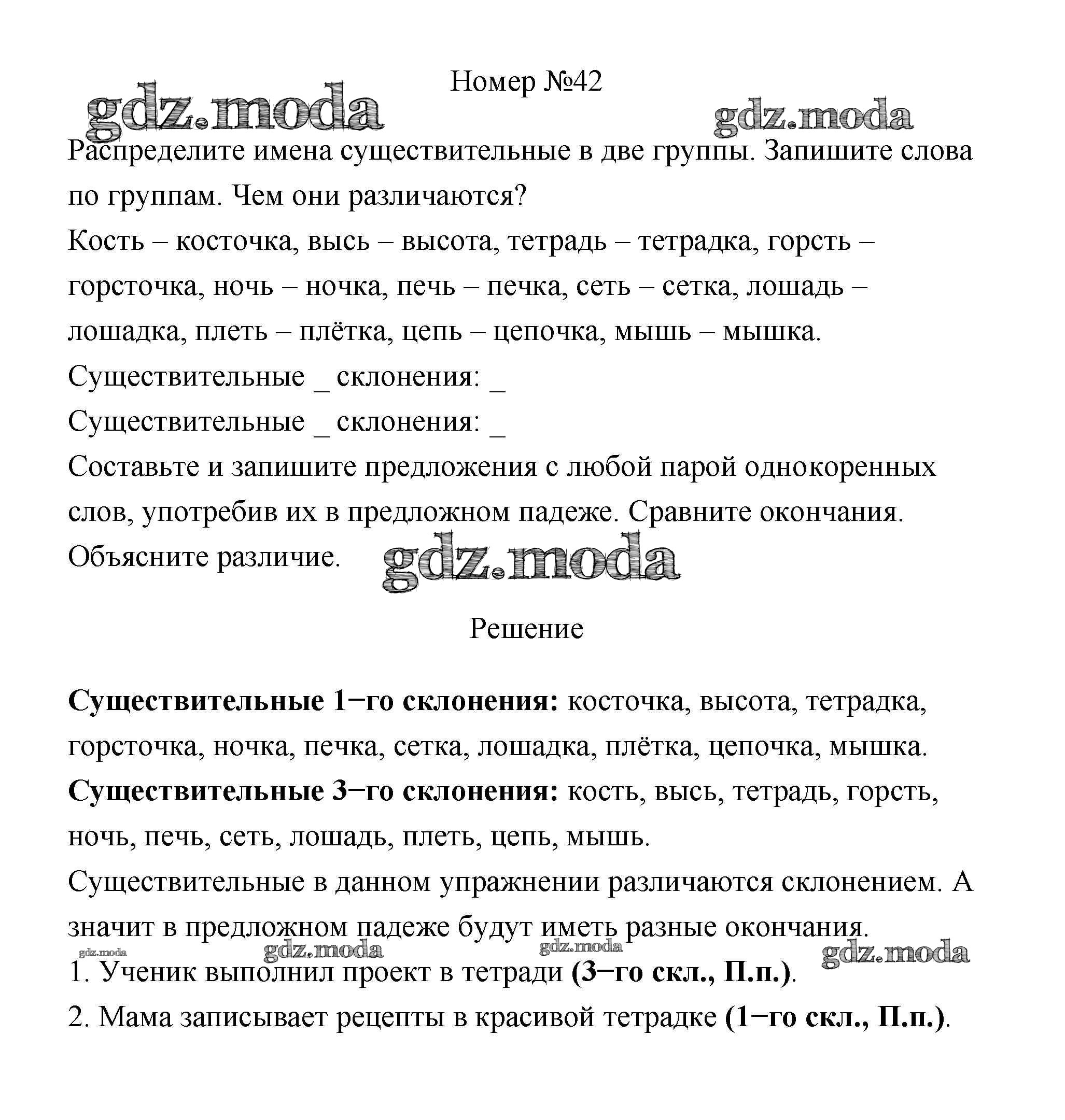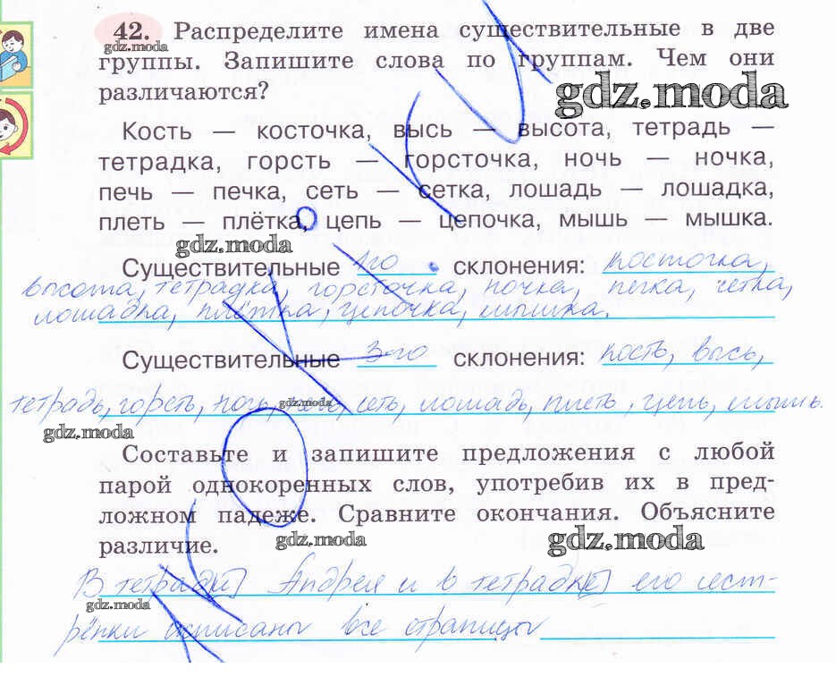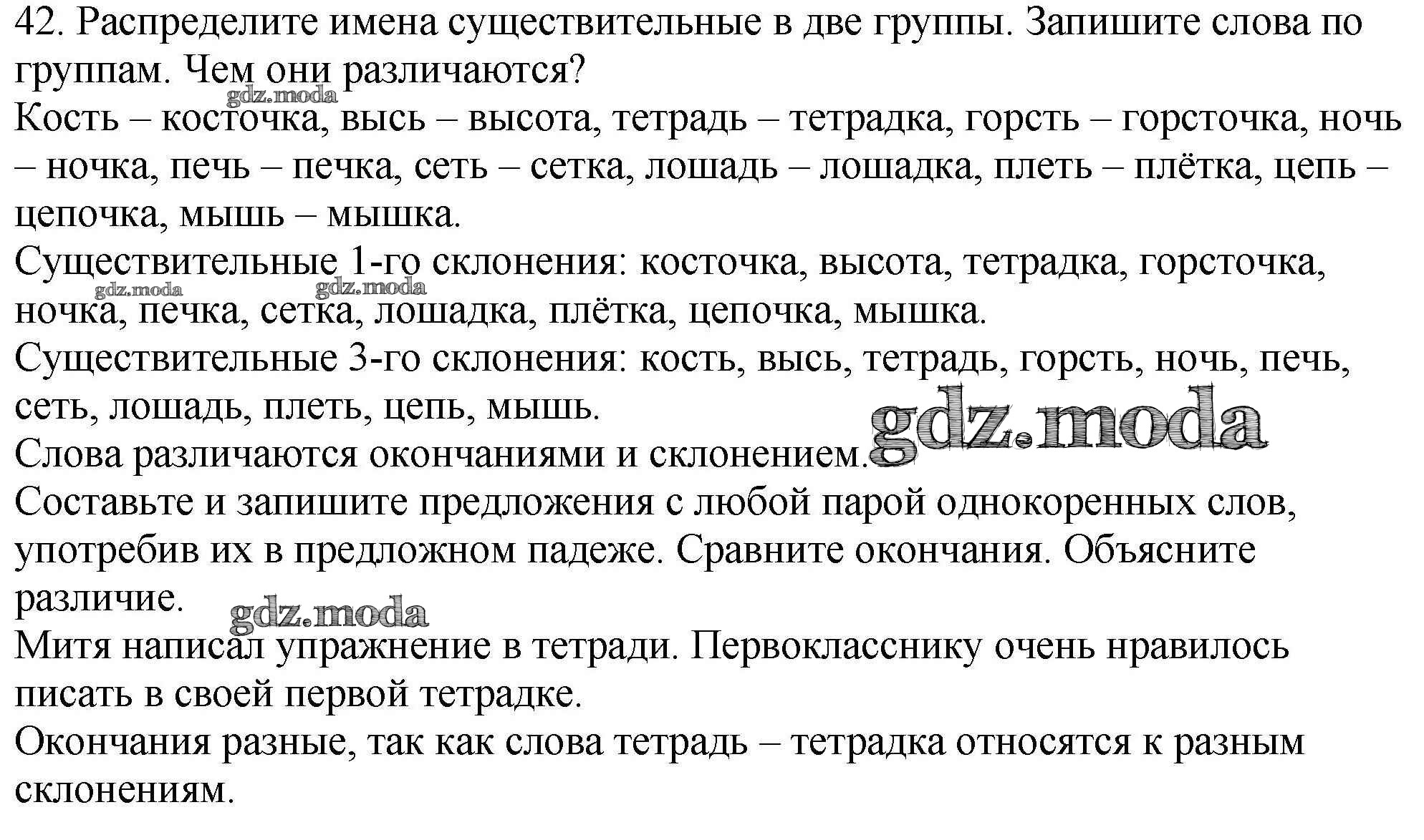 ОТВЕТ на задание № 42 Рабочая тетрадь по Русскому языку 4 класс Климанова Перспектива