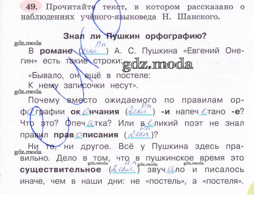ОТВЕТ на задание № 49 Рабочая тетрадь по Русскому языку 4 класс Климанова Перспектива