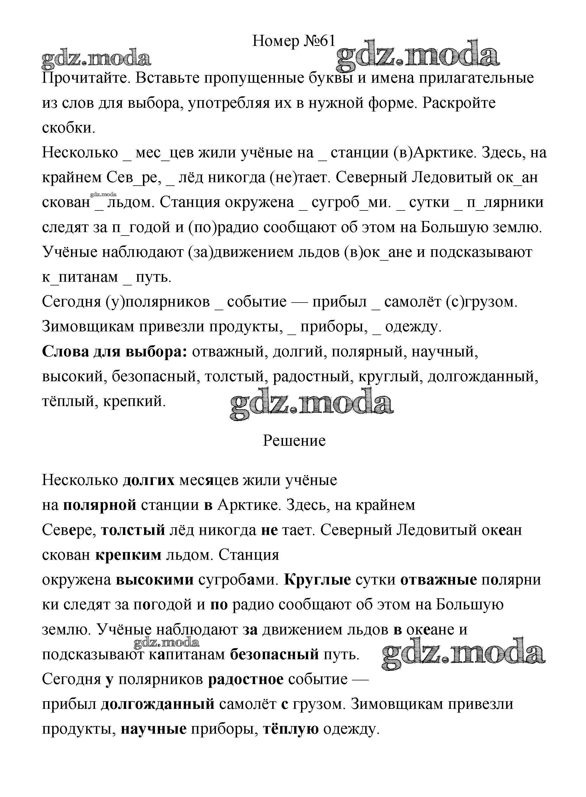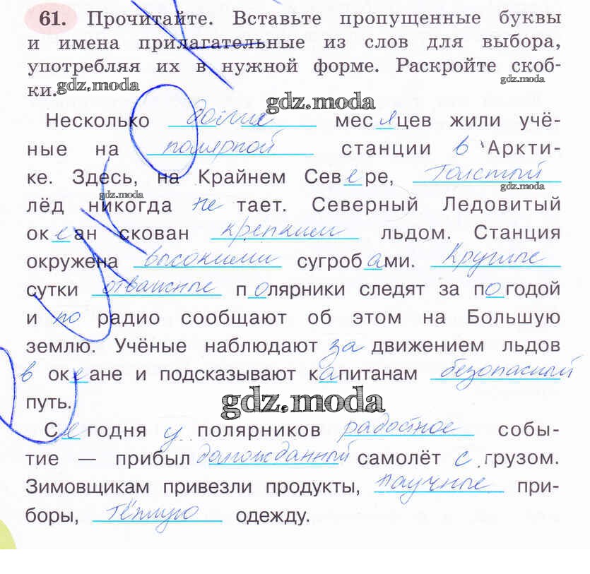 ОТВЕТ на задание № 61 Рабочая тетрадь по Русскому языку 4 класс Климанова Перспектива