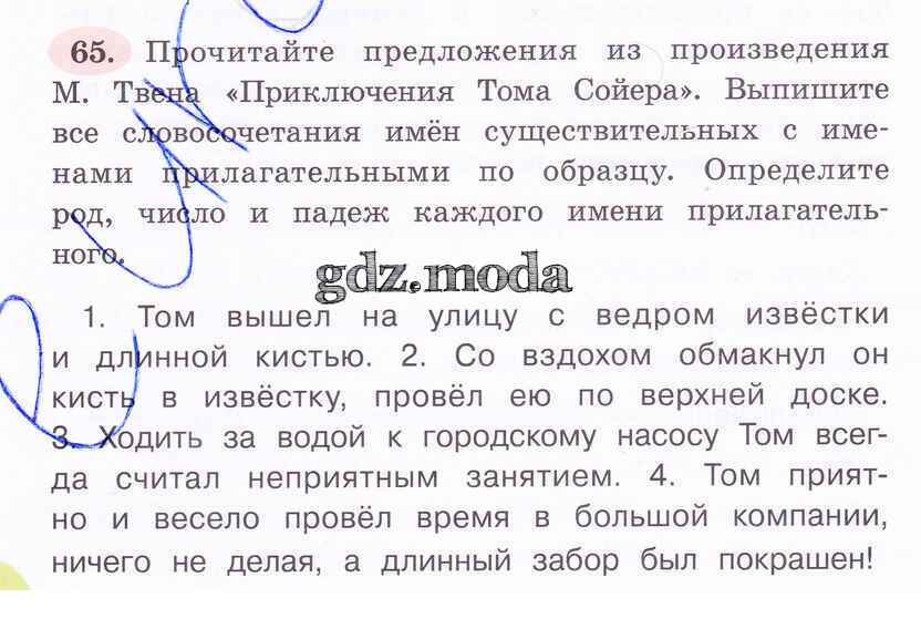 ОТВЕТ на задание № 65 Рабочая тетрадь по Русскому языку 4 класс Климанова Перспектива