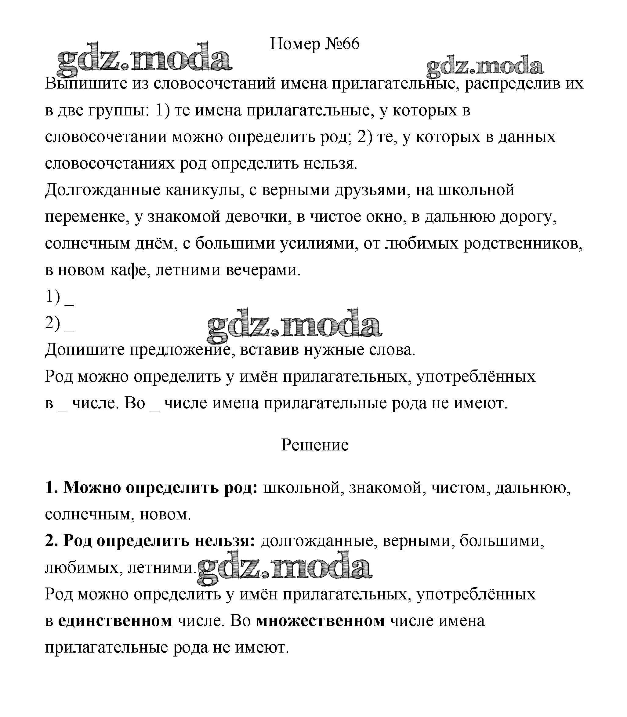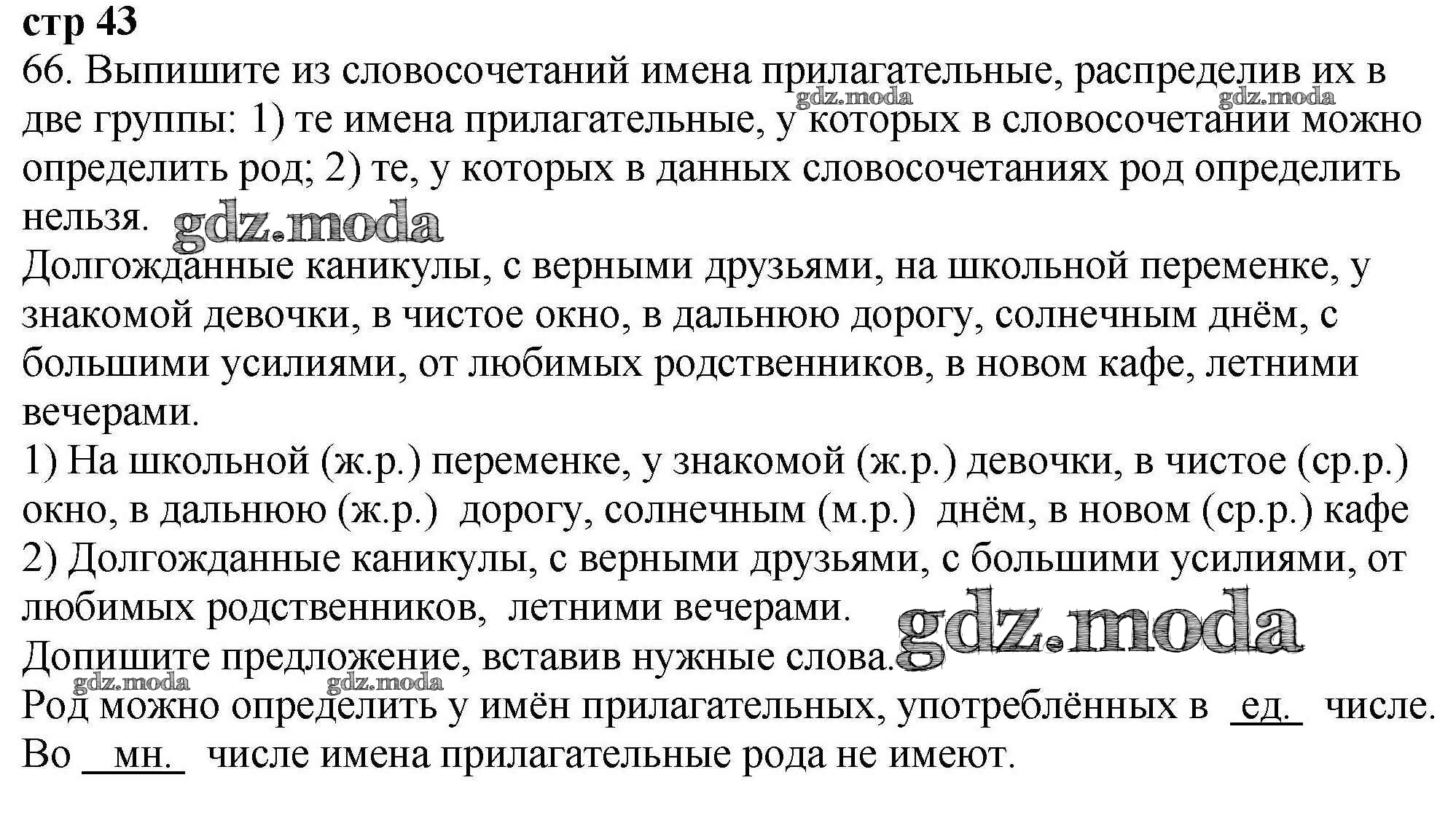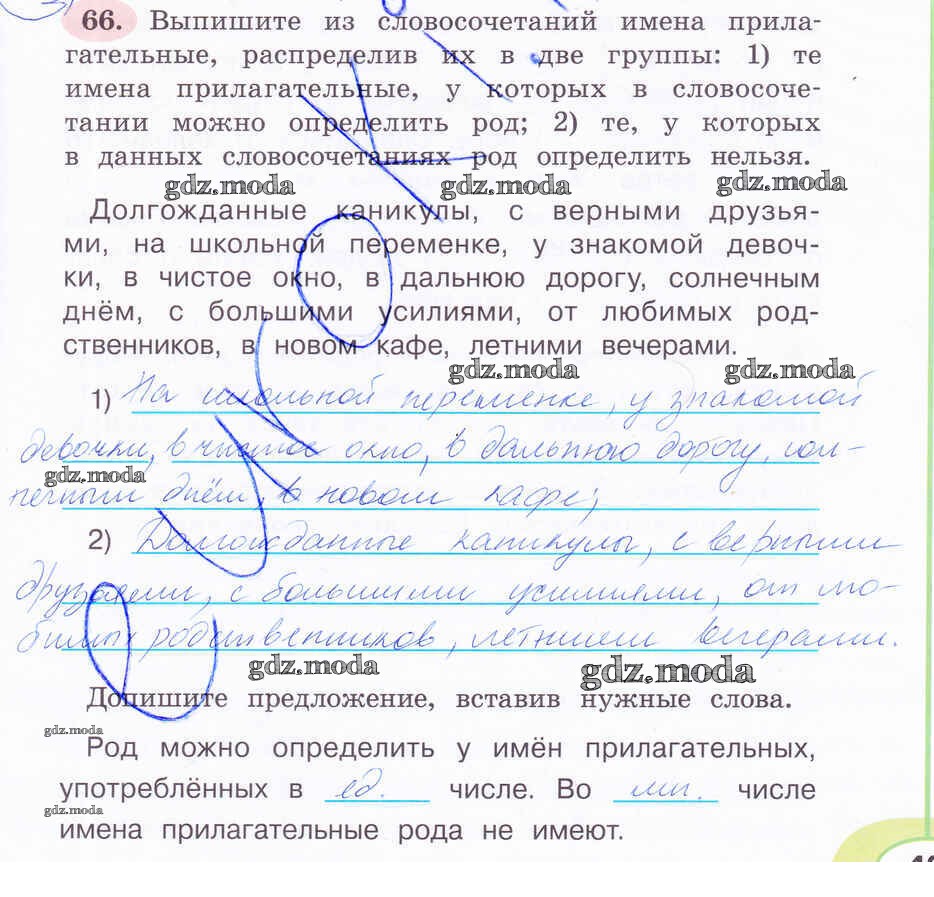 ОТВЕТ на задание № 66 Рабочая тетрадь по Русскому языку 4 класс Климанова Перспектива