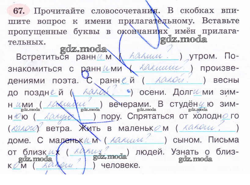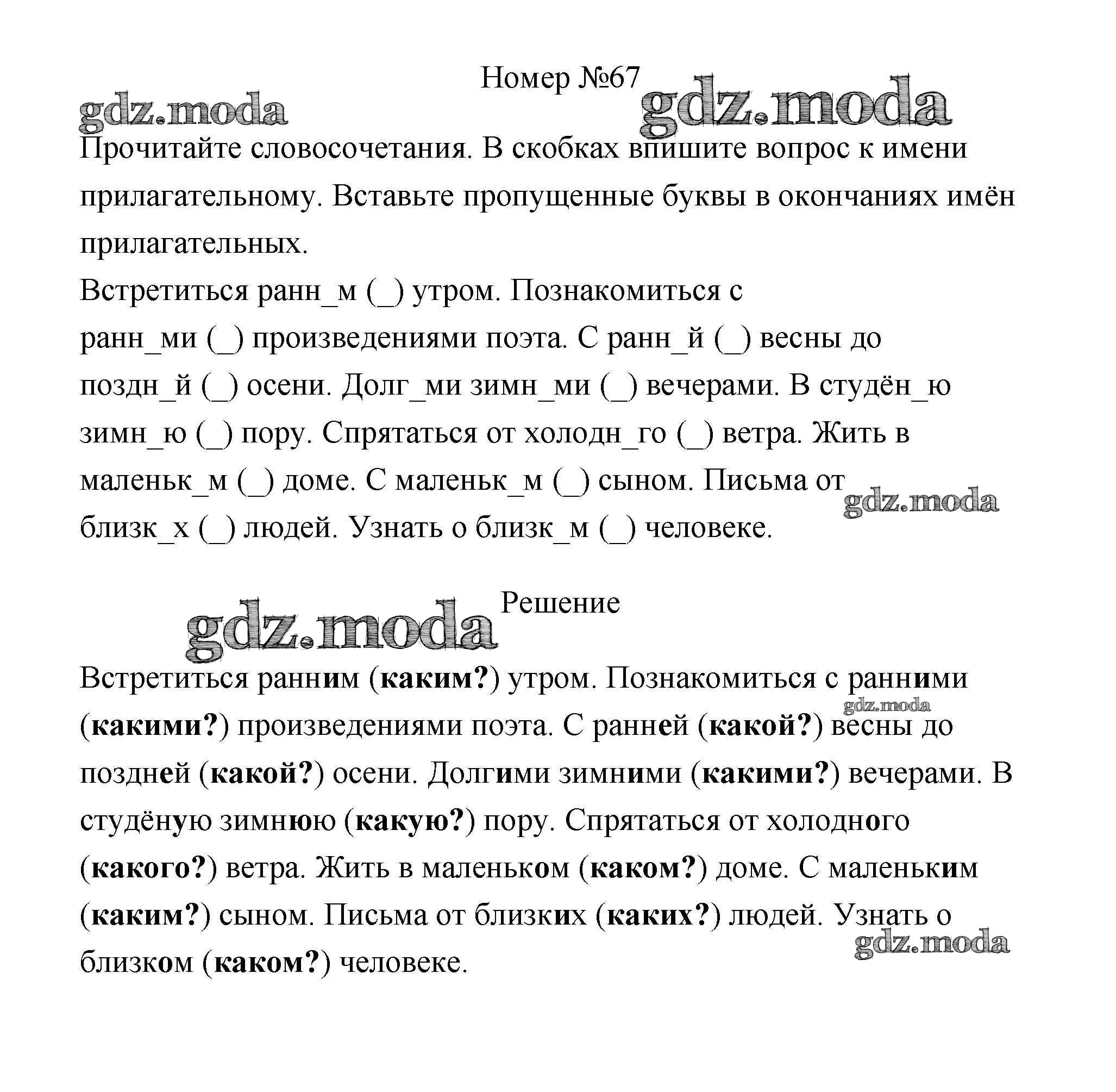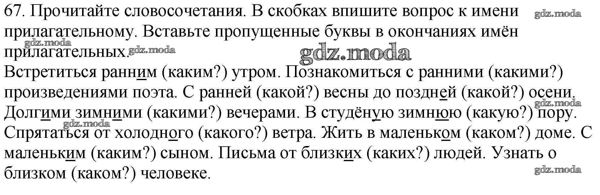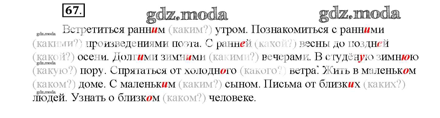 ОТВЕТ на задание № 67 Рабочая тетрадь по Русскому языку 4 класс Климанова Перспектива