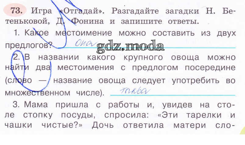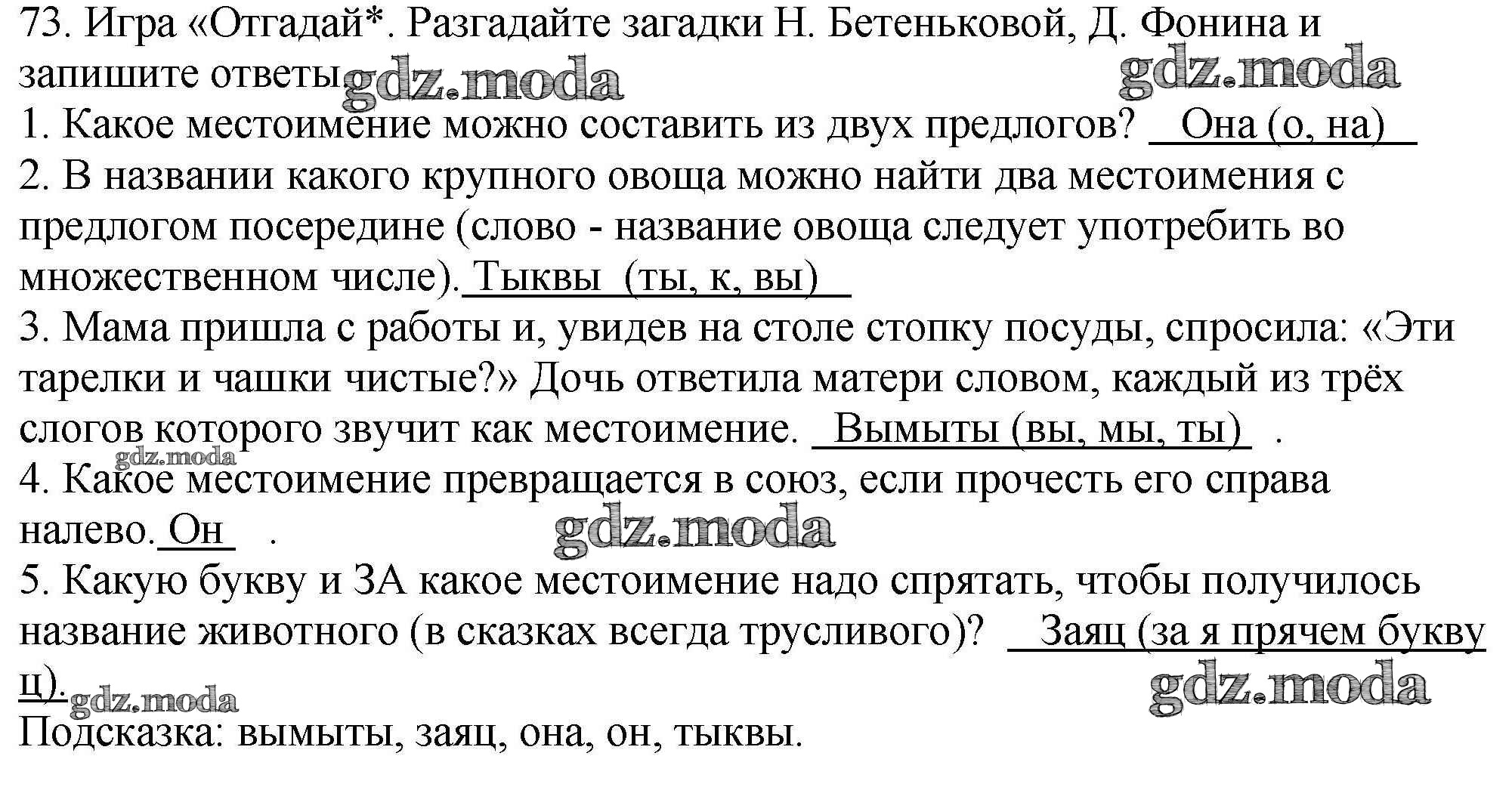 ОТВЕТ на задание № 73 Рабочая тетрадь по Русскому языку 4 класс Климанова Перспектива
