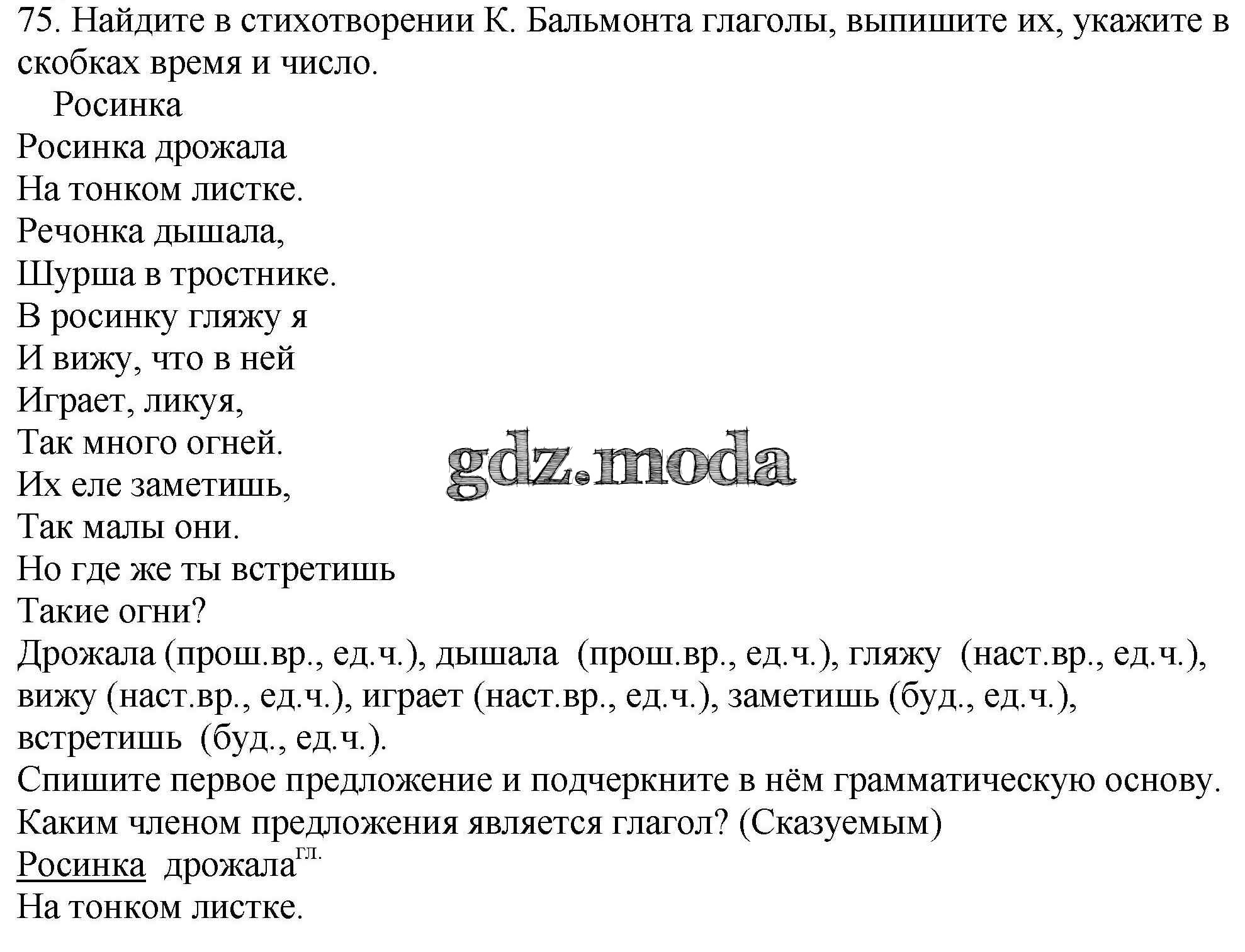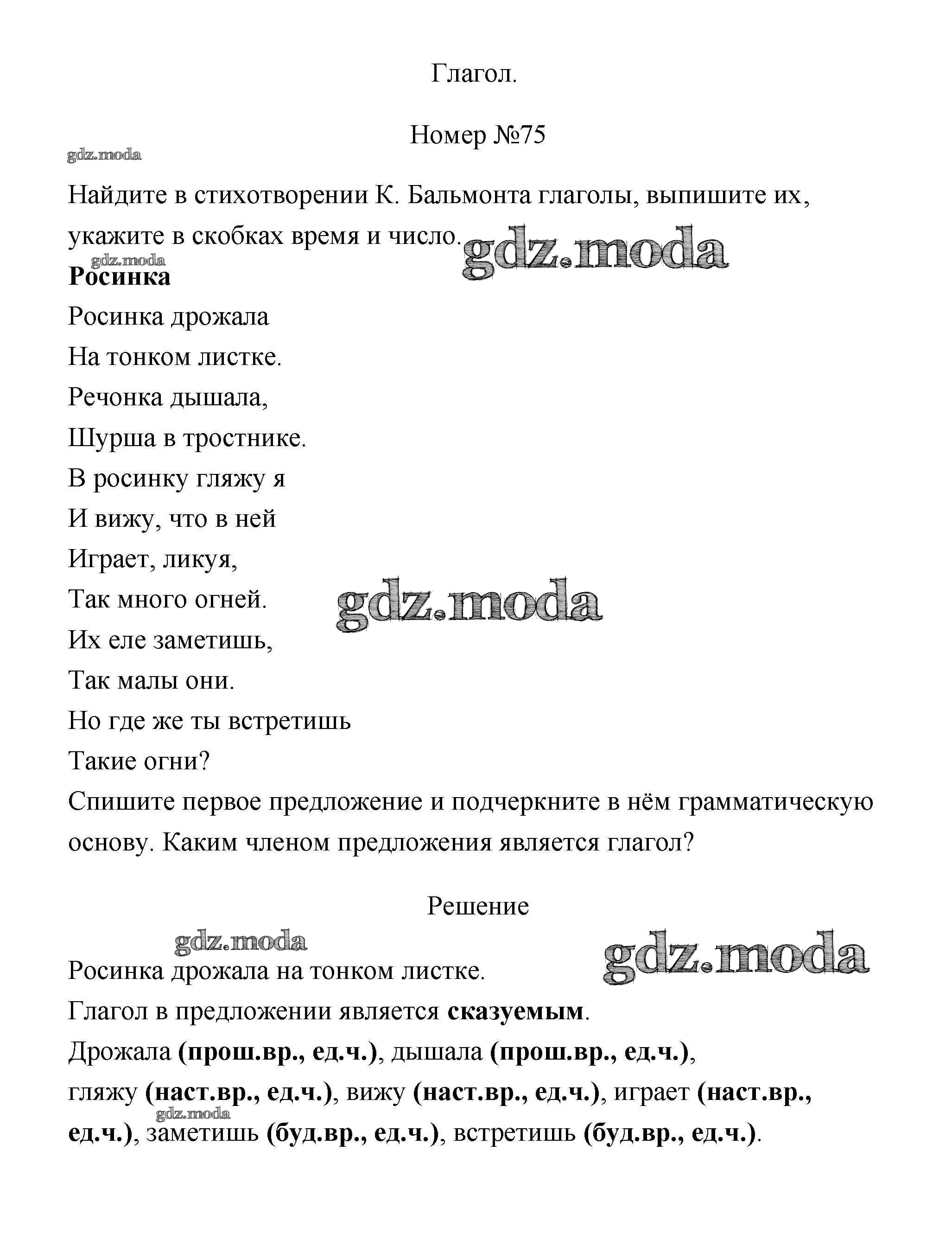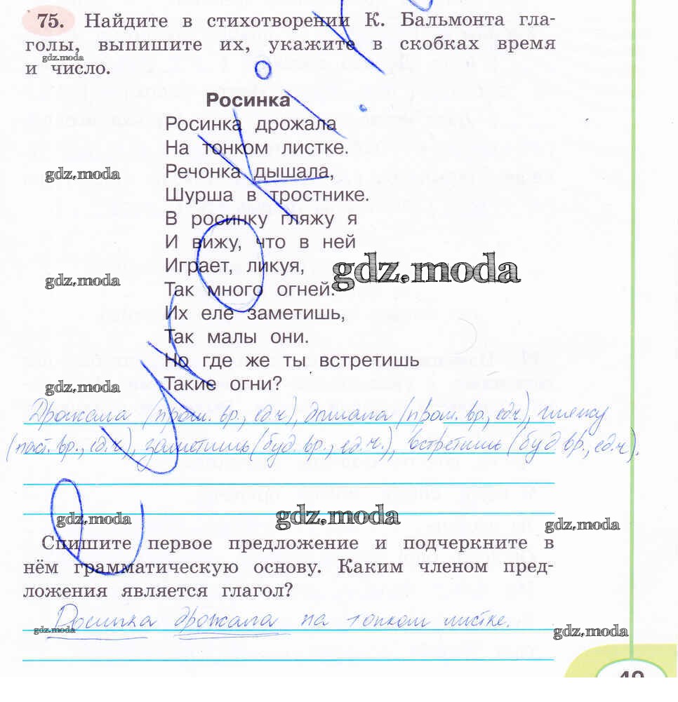 ОТВЕТ на задание № 75 Рабочая тетрадь по Русскому языку 4 класс Климанова Перспектива