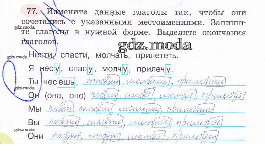 ОТВЕТ на задание № 77 Рабочая тетрадь по Русскому языку 4 класс Климанова Перспектива