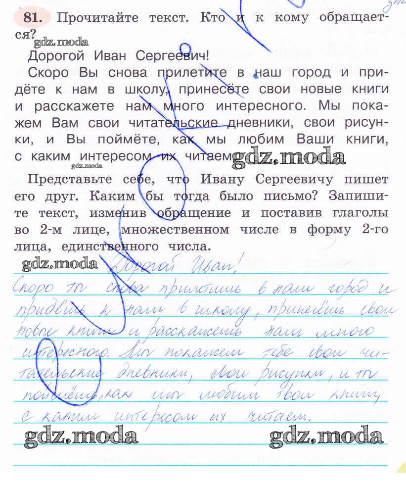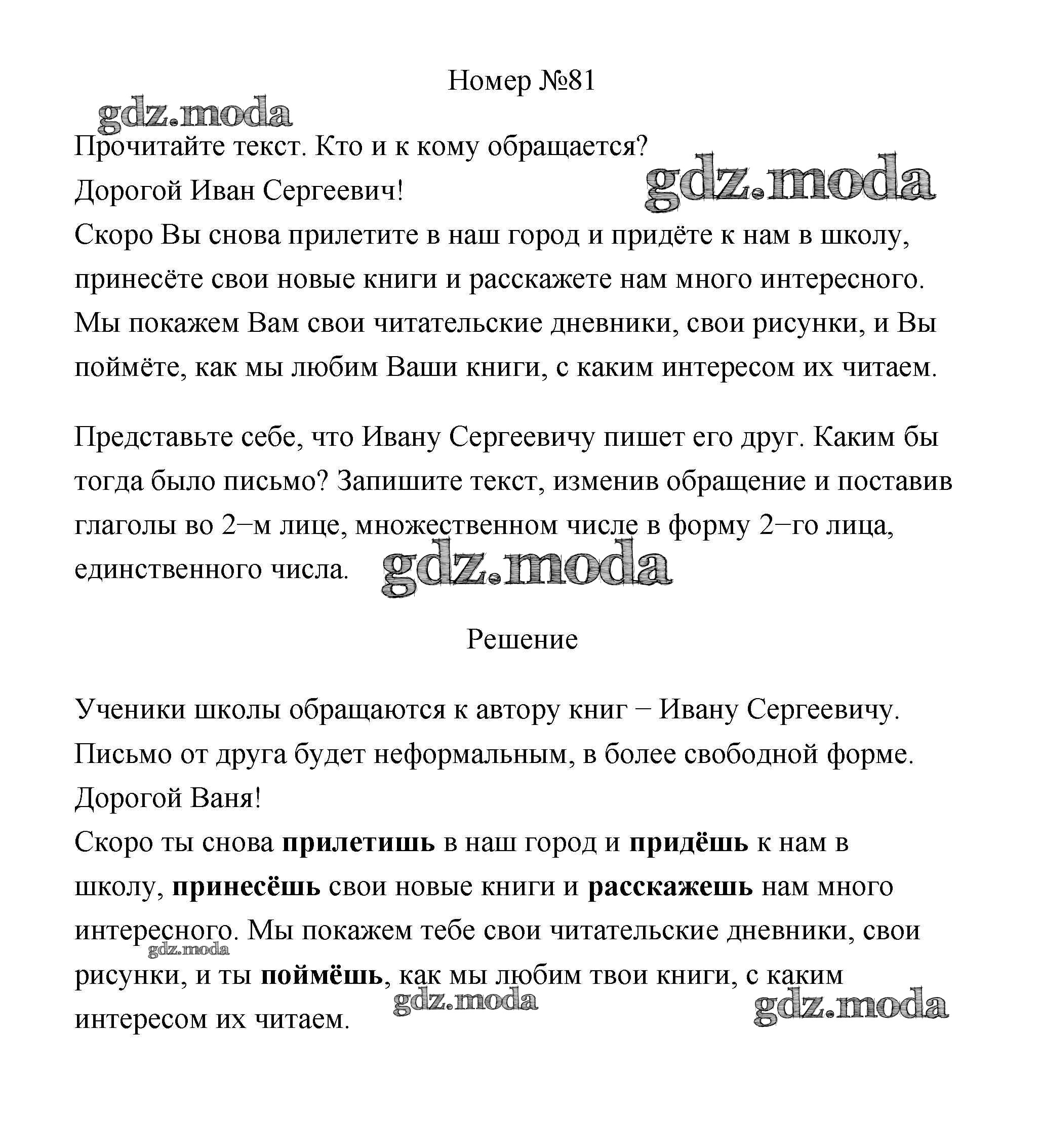 ОТВЕТ на задание № 81 Рабочая тетрадь по Русскому языку 4 класс Климанова Перспектива