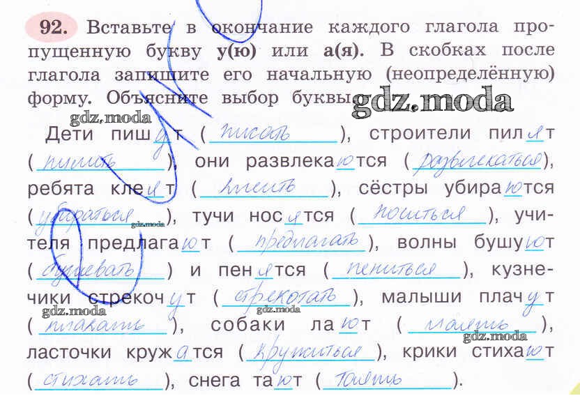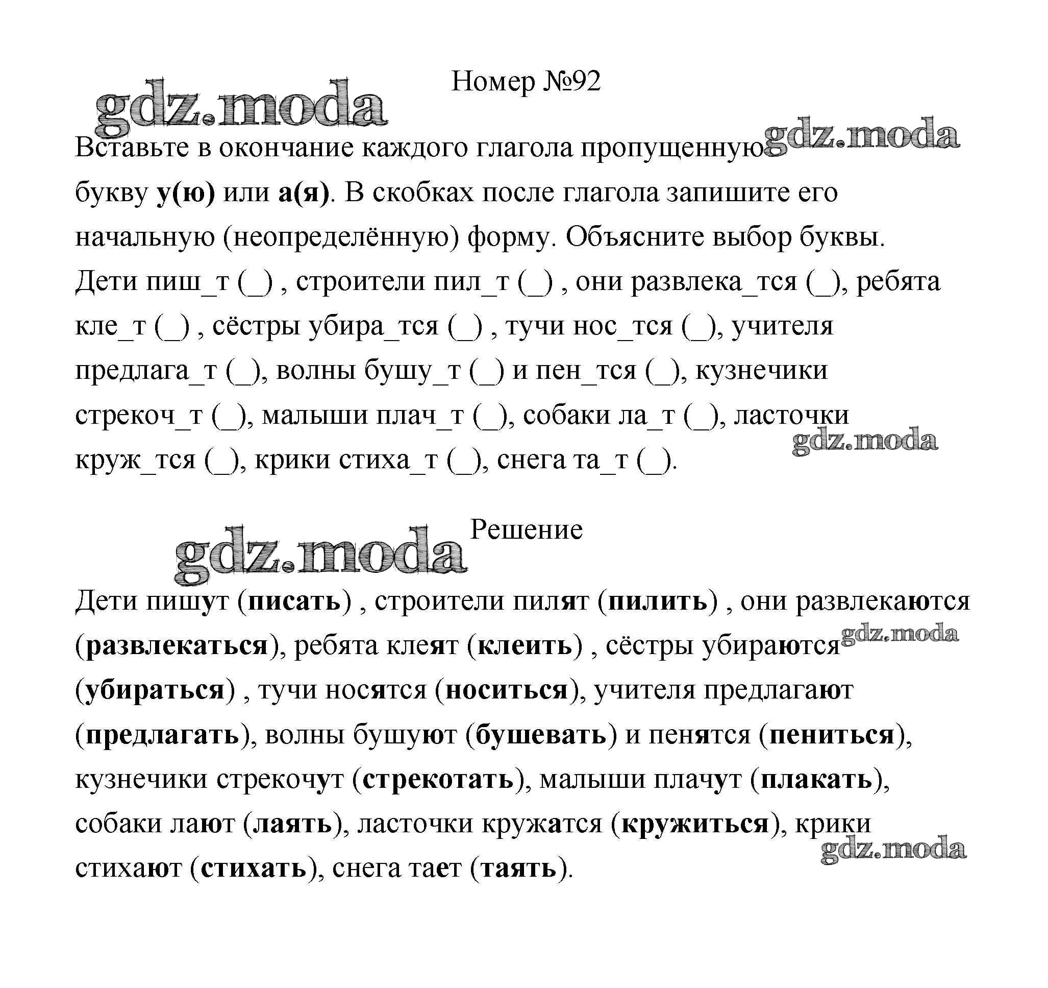 ОТВЕТ на задание № 92 Рабочая тетрадь по Русскому языку 4 класс Климанова Перспектива