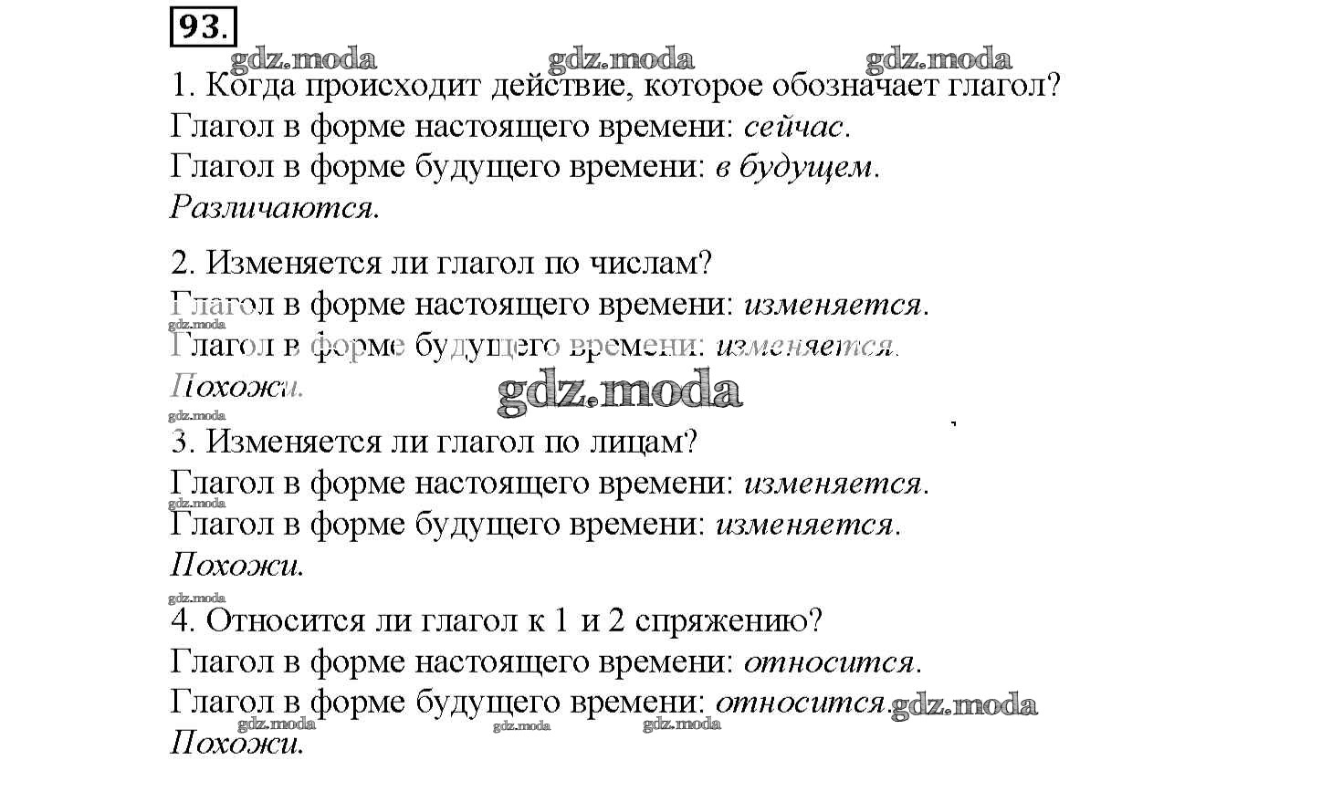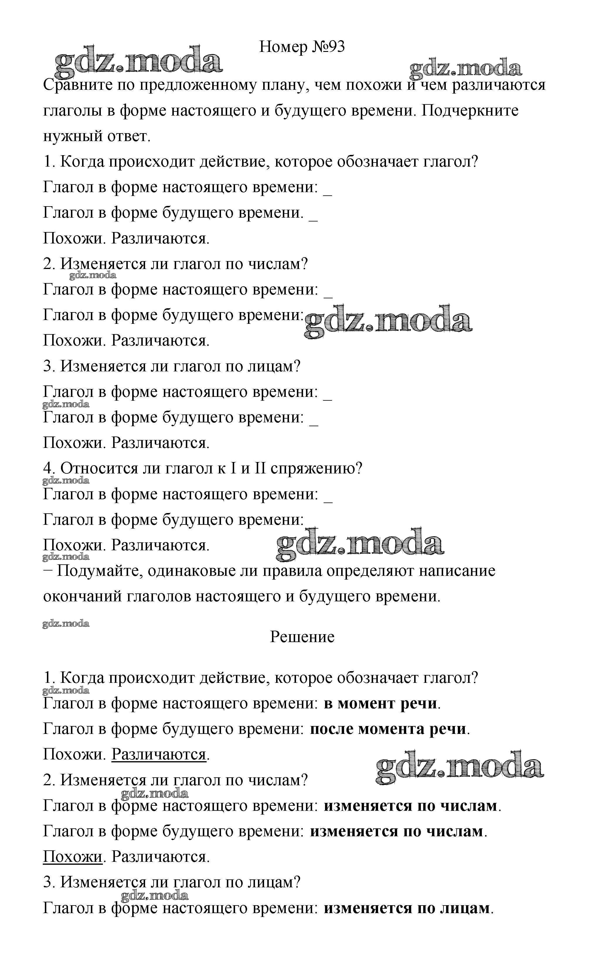 ОТВЕТ на задание № 93 Рабочая тетрадь по Русскому языку 4 класс Климанова Перспектива