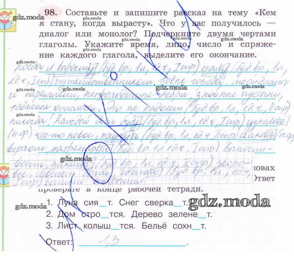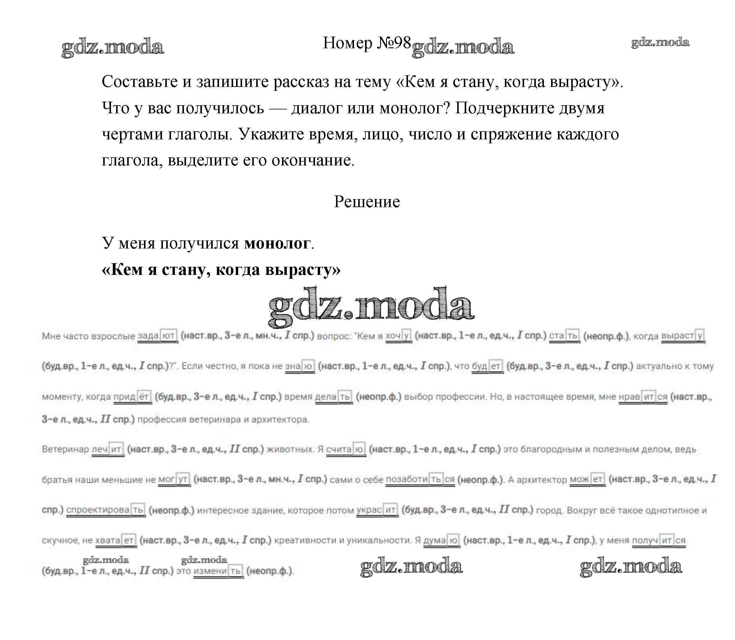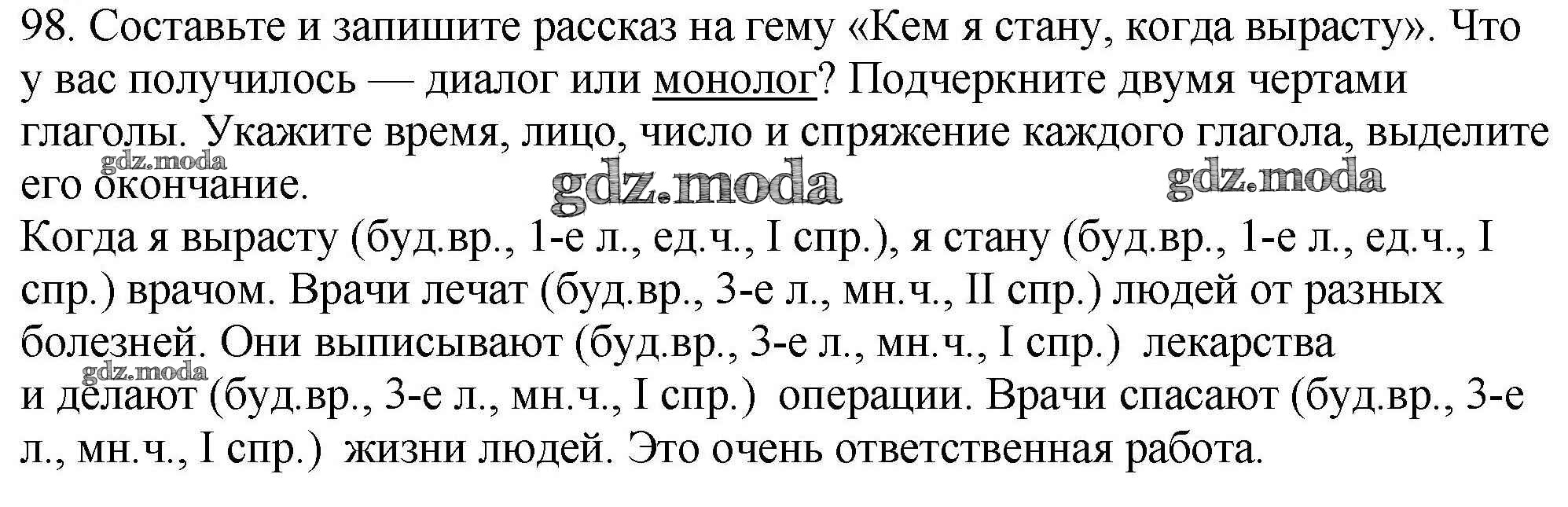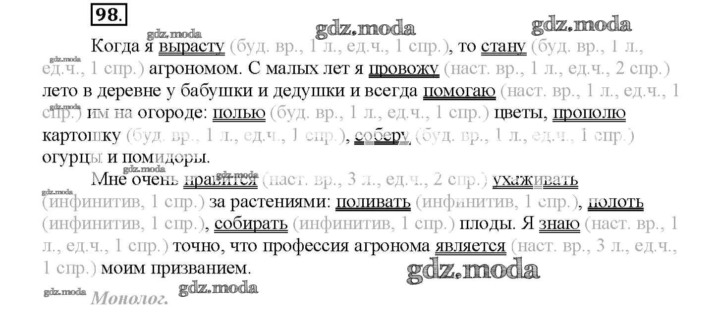 ОТВЕТ на задание № 98 Рабочая тетрадь по Русскому языку 4 класс Климанова Перспектива