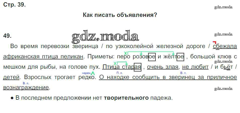 ГДЗ решение к заданию № 39 Русский язык 4 класс Тетрадь для самостоятельной работы. Потренируйся! Корешкова Т.В. Ассоциация 21 век 2019 Часть 1, Часть 2 ФГОС бесплатно на гдз.мода!