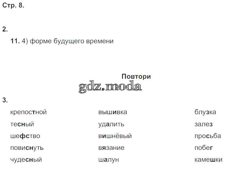 ГДЗ решение к заданию № 8 Русский язык 4 класс Тетрадь для самостоятельной работы. Потренируйся! Корешкова Т.В. Ассоциация 21 век 2019 Часть 1, Часть 2 ФГОС бесплатно на гдз.мода!