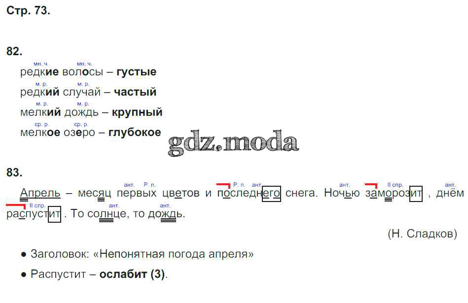 ГДЗ решение к заданию № 73 Русский язык 4 класс Тетрадь для самостоятельной работы. Потренируйся! Корешкова Т.В. Ассоциация 21 век 2019 Часть 1, Часть 2 ФГОС бесплатно на гдз.мода!