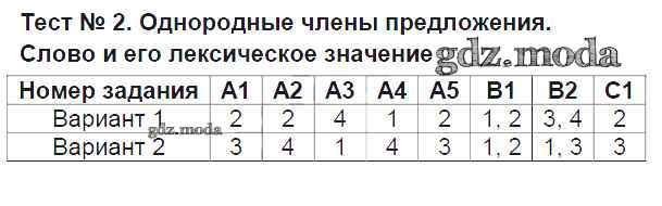 ГДЗ решение к заданию № Тест №2. Однородные члены предложения Русский язык 4 класс контрольно-измерительные материалы (КИМ) Крылова О.Н. Экзамен 2014 ФГОС бесплатно на гдз.мода!