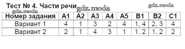 ГДЗ решение к заданию № Тест №4. Части речи Русский язык 4 класс контрольно-измерительные материалы (КИМ) Крылова О.Н. Экзамен 2014 ФГОС бесплатно на гдз.мода!