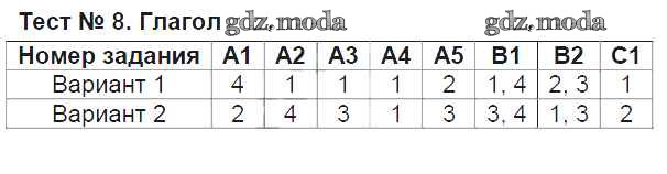 ГДЗ решение к заданию № Тест №8. Глагол Русский язык 4 класс контрольно-измерительные материалы (КИМ) Крылова О.Н. Экзамен 2014 ФГОС бесплатно на гдз.мода!