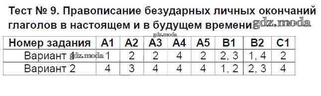 ГДЗ решение к заданию № Тест №9. Правописание безударных личных окончаний глаголов в настоящем и в будущем времени Русский язык 4 класс контрольно-измерительные материалы (КИМ) Крылова О.Н. Экзамен 2014 ФГОС бесплатно на гдз.мода!