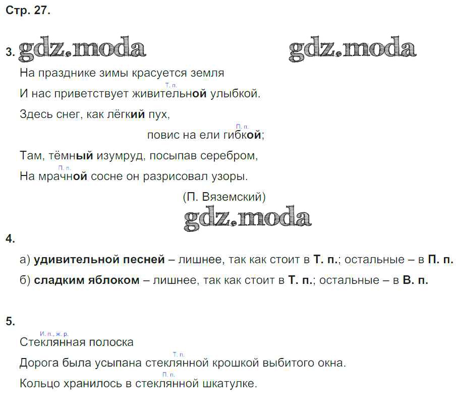 ГДЗ решение к заданию № 27 Русский язык 4 класс контрольные работы Крылова О.Н. (к уч. Канакиной) Экзамен 2015 Часть 1, Часть 2 ФГОС бесплатно на гдз.мода!