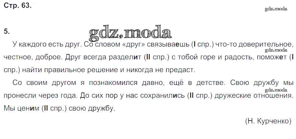 ОТВЕТ на задание № 63 Контрольные работы по Русскому языку 4 класс Крылова УМК