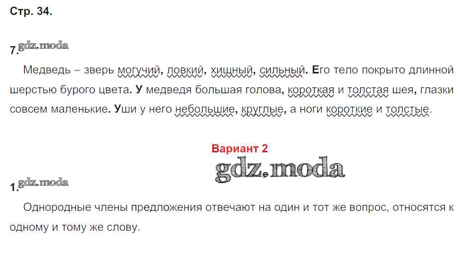 ГДЗ решение к заданию № 34 Русский язык 4 класс Контрольные работы Крылова О.Н. Экзамен 2015 Часть 1, Часть 2 ФГОС бесплатно на гдз.мода!