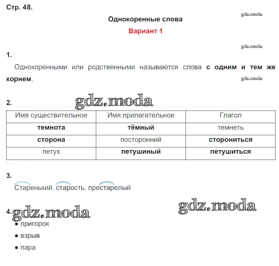ГДЗ решение к заданию № 48 Русский язык 4 класс Контрольные работы Крылова О.Н. Экзамен 2015 Часть 1, Часть 2 ФГОС бесплатно на гдз.мода!