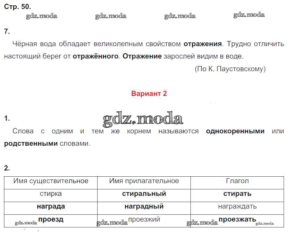 ГДЗ решение к заданию № 50 Русский язык 4 класс Контрольные работы Крылова О.Н. Экзамен 2015 Часть 1, Часть 2 ФГОС бесплатно на гдз.мода!