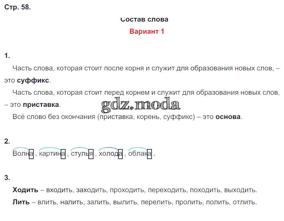 ГДЗ решение к заданию № 58 Русский язык 4 класс Контрольные работы Крылова О.Н. Экзамен 2015 Часть 1, Часть 2 ФГОС бесплатно на гдз.мода!