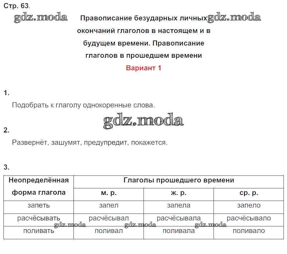 ГДЗ решение к заданию № 63 Русский язык 4 класс Контрольные работы Крылова О.Н. Экзамен 2015 Часть 1, Часть 2 ФГОС бесплатно на гдз.мода!