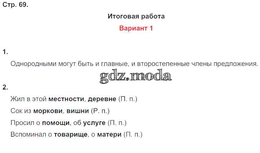 ГДЗ решение к заданию № 69 Русский язык 4 класс Контрольные работы Крылова О.Н. Экзамен 2015 Часть 1, Часть 2 ФГОС бесплатно на гдз.мода!