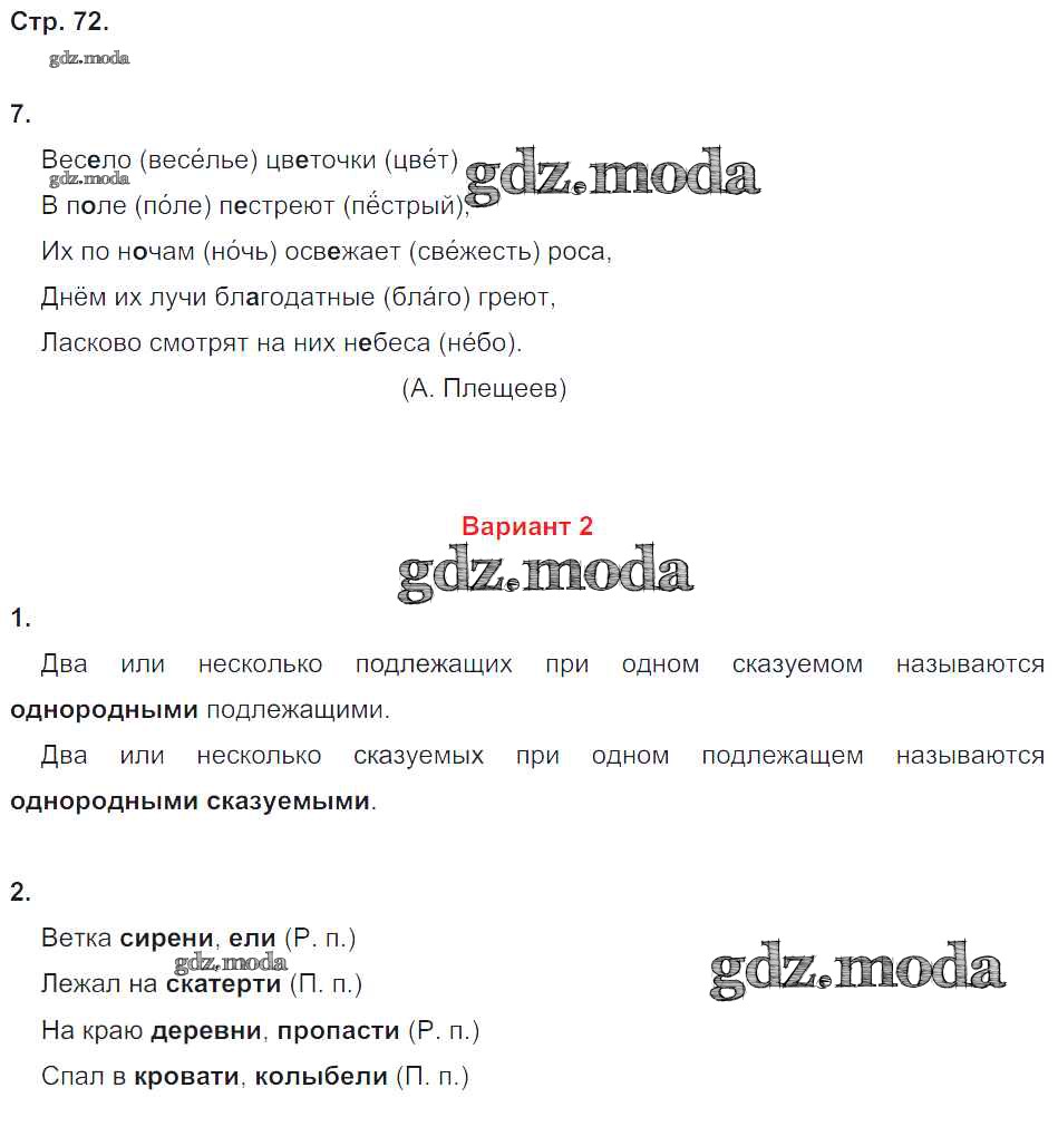 ГДЗ решение к заданию № 72 Русский язык 4 класс Контрольные работы Крылова О.Н. Экзамен 2015 Часть 1, Часть 2 ФГОС бесплатно на гдз.мода!