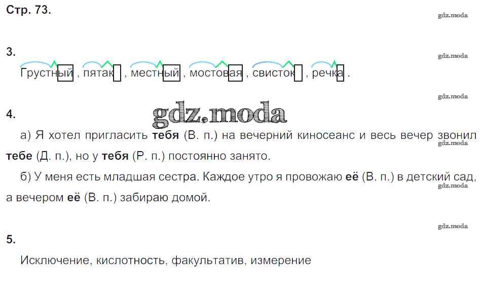 ГДЗ решение к заданию № 73 Русский язык 4 класс Контрольные работы Крылова О.Н. Экзамен 2015 Часть 1, Часть 2 ФГОС бесплатно на гдз.мода!