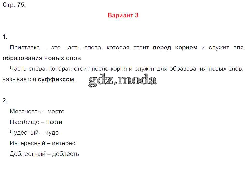 ГДЗ решение к заданию № 75 Русский язык 4 класс Контрольные работы Крылова О.Н. Экзамен 2015 Часть 1, Часть 2 ФГОС бесплатно на гдз.мода!