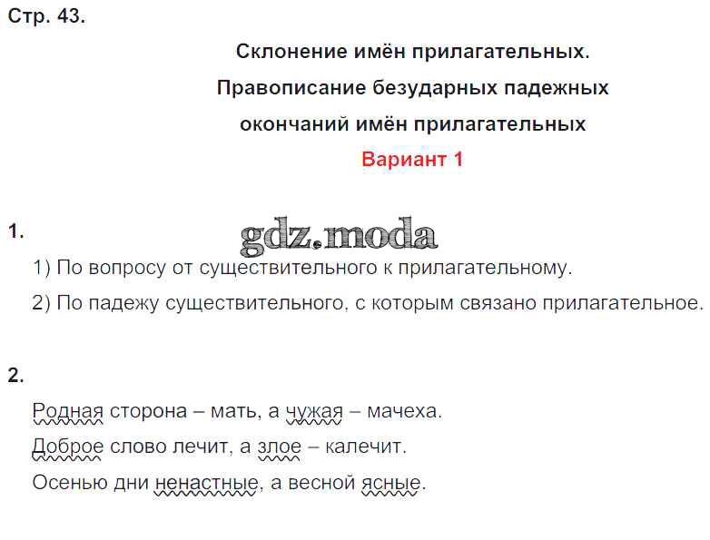 ГДЗ решение к заданию № 43 Русский язык 4 класс Контрольные работы Крылова О.Н. Экзамен 2015 Часть 1, Часть 2 ФГОС бесплатно на гдз.мода!