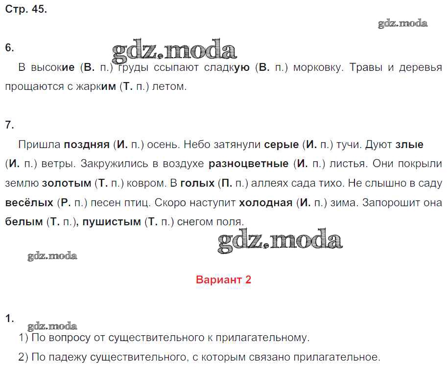 ГДЗ решение к заданию № 45 Русский язык 4 класс Контрольные работы Крылова О.Н. Экзамен 2015 Часть 1, Часть 2 ФГОС бесплатно на гдз.мода!