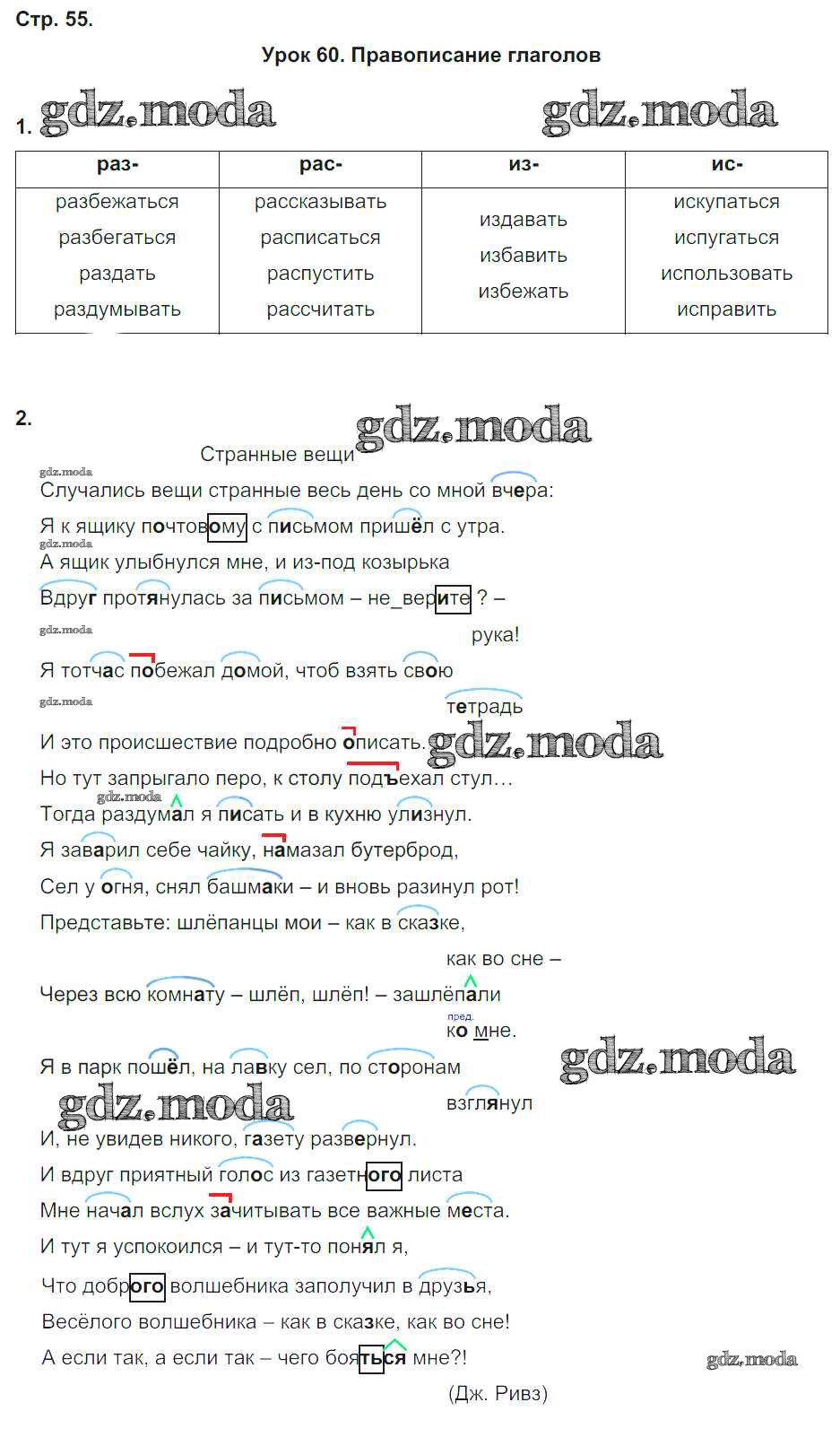 ГДЗ решение к заданию № 55 Русский язык 4 класс Пишем грамотно рабочая тетрадь Кузнецова М.И. Вентана-граф 2018 Часть 1, Часть 2 ФГОС бесплатно на гдз.мода!