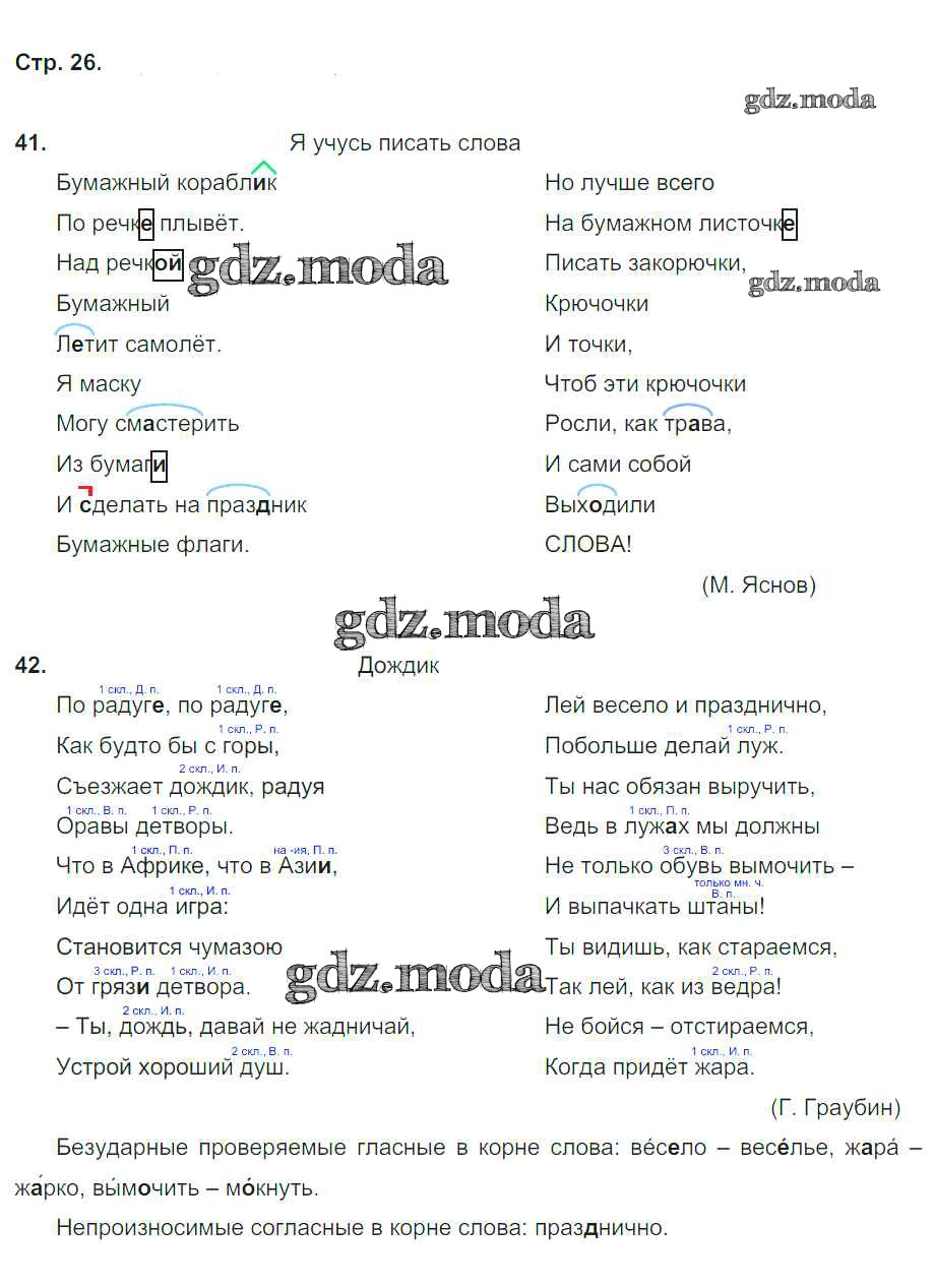 ГДЗ решение к заданию № 26 Русский язык 4 класс Учусь писать без ошибок рабочая тетрадь Кузнецова М.И. Вентана-граф 2015 ФГОС бесплатно на гдз.мода!